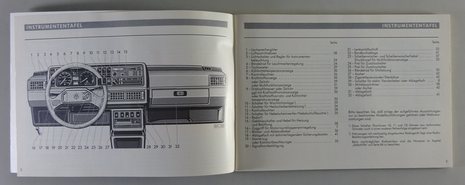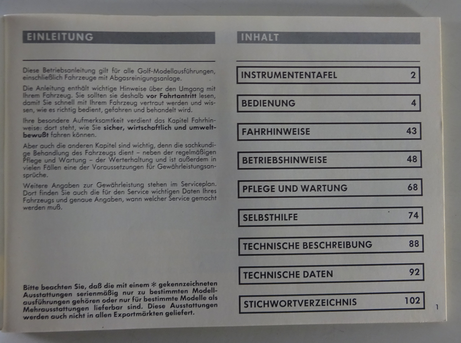 Bedienungsanleitung / Handbuch / Betriebsanleitung VW Golf II / 2 Inhalt:... mehr