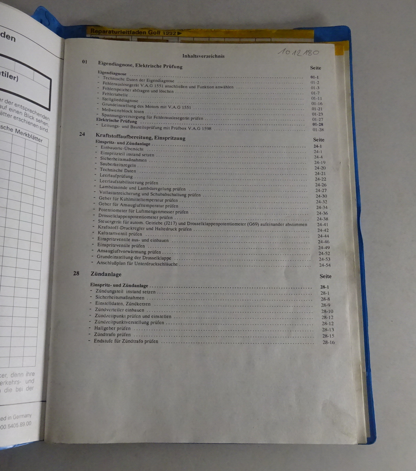 Werkstatthandbuch VW Golf III/3 Digifant Einspritz- & Zündanlage von 10/1991