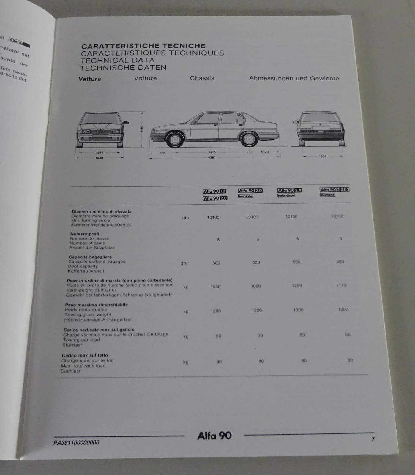 Inhalt: Profil des Alfa 90, Technische Daten, Karosserie, Innenausstattung, Antriebsaggregate