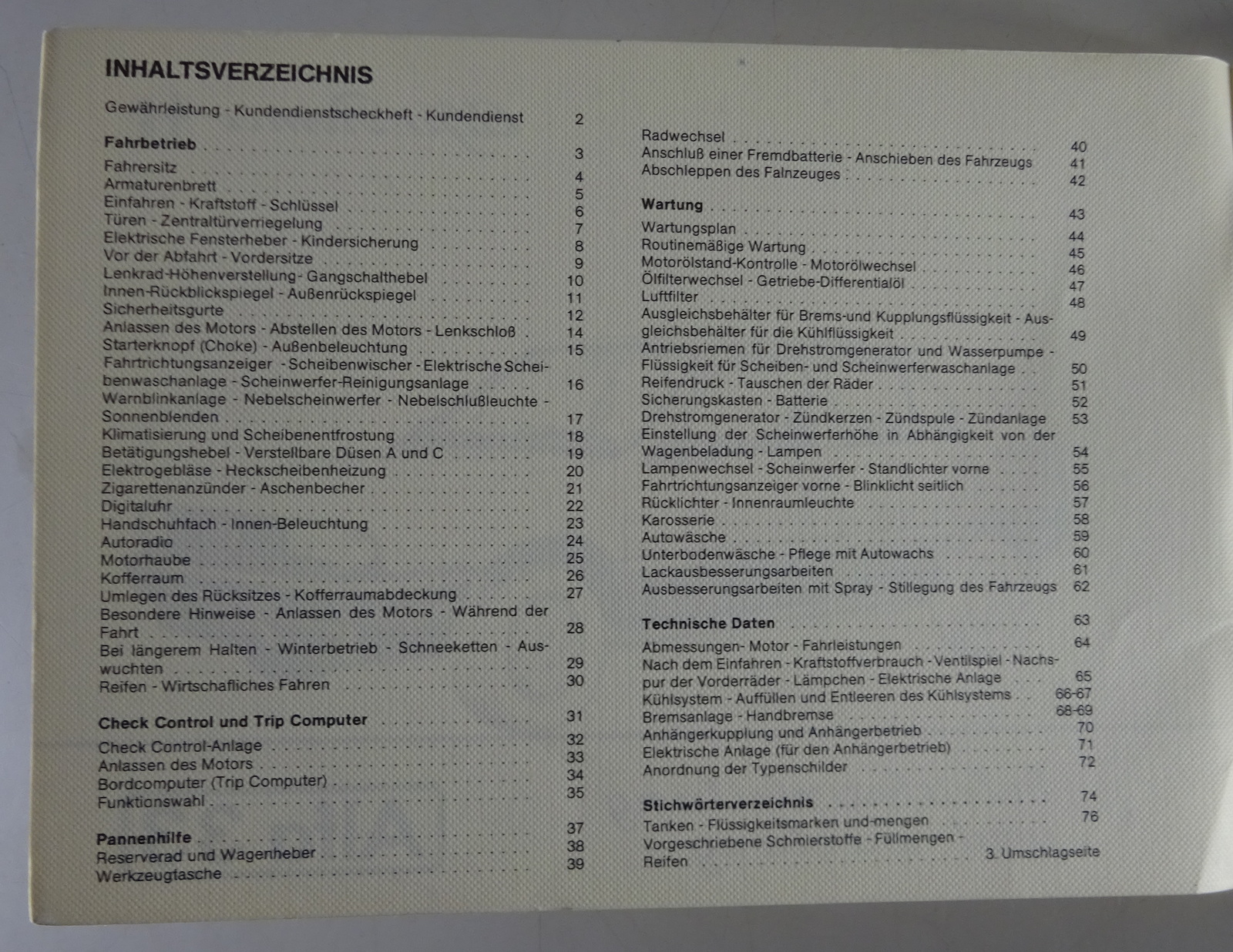 Inhalt: Technische Daten, Bedienung, Beschreibung, Fahrhinweise, Wartung/Pflege etc.
