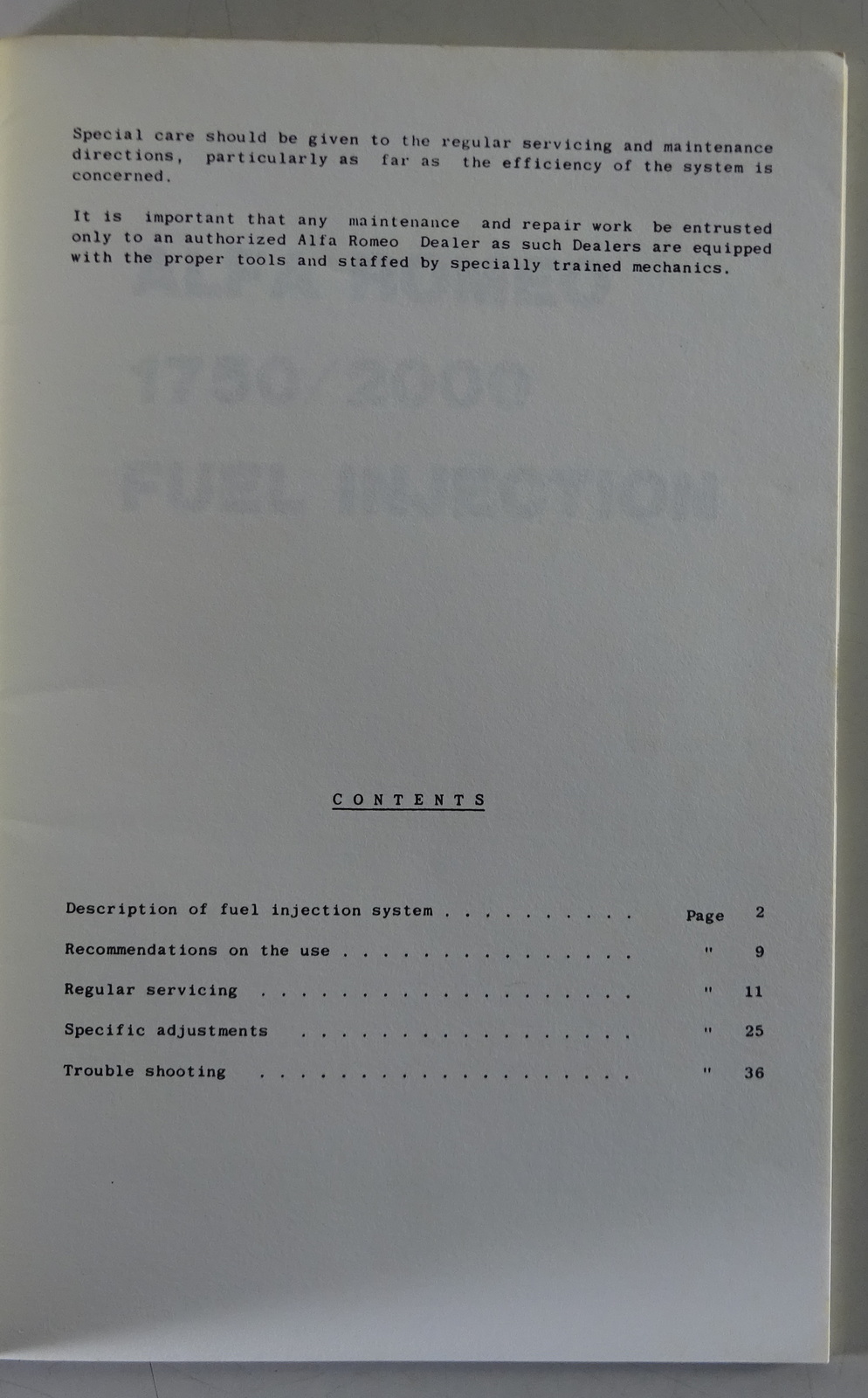 Handbuch Alfa Romeo Fuel Injection Berlina / Spider / Sprint Stand 1968 - 1977