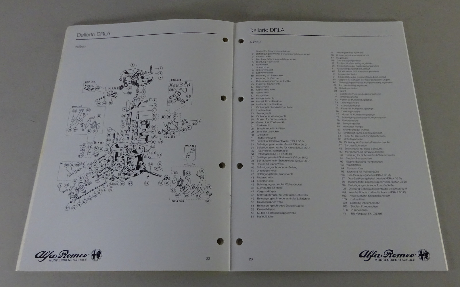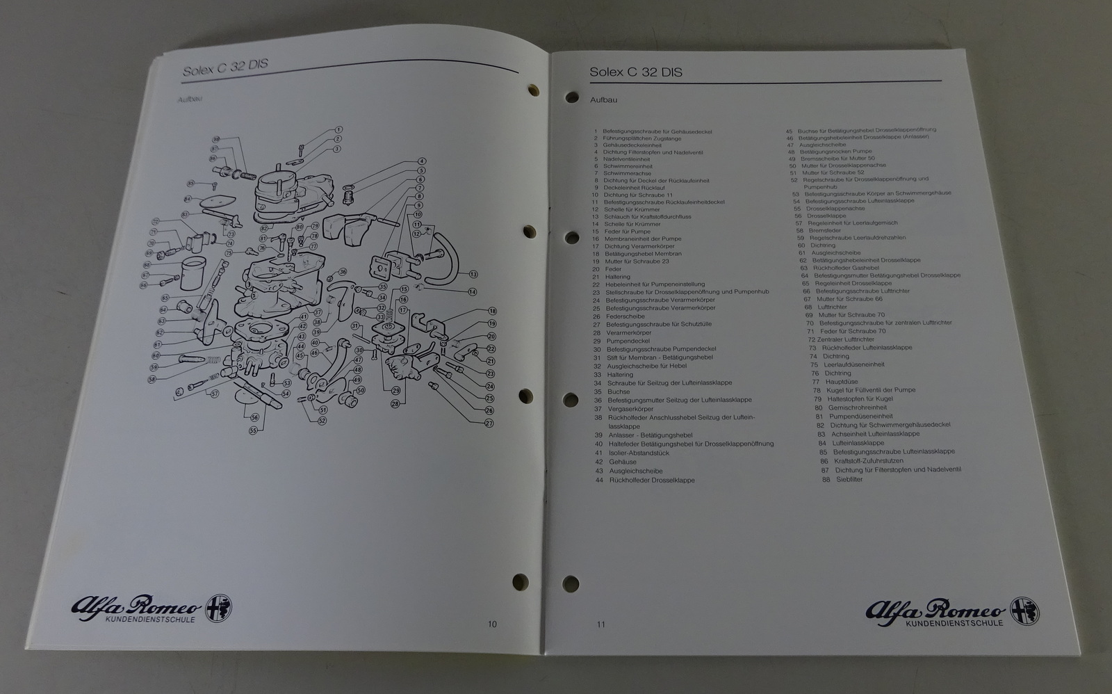 Schulungsunterlage Alfa Romeo Vergaser - alle Typen - Boxermotor Stand 10/1984