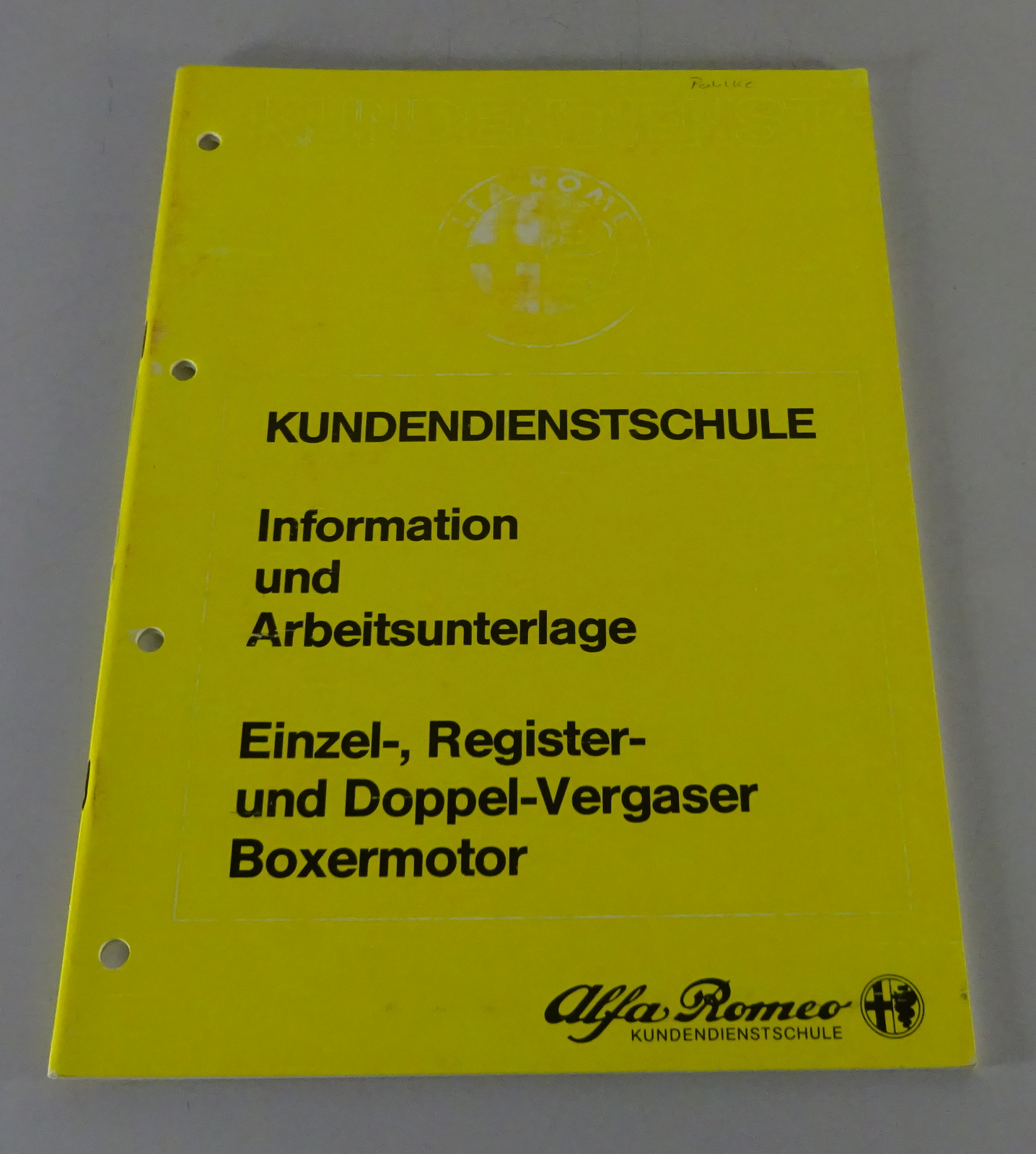 Produktinformationen "Schulungsunterlage Alfa Romeo Vergaser - alle Typen - Boxermotor Stand 10/1984"