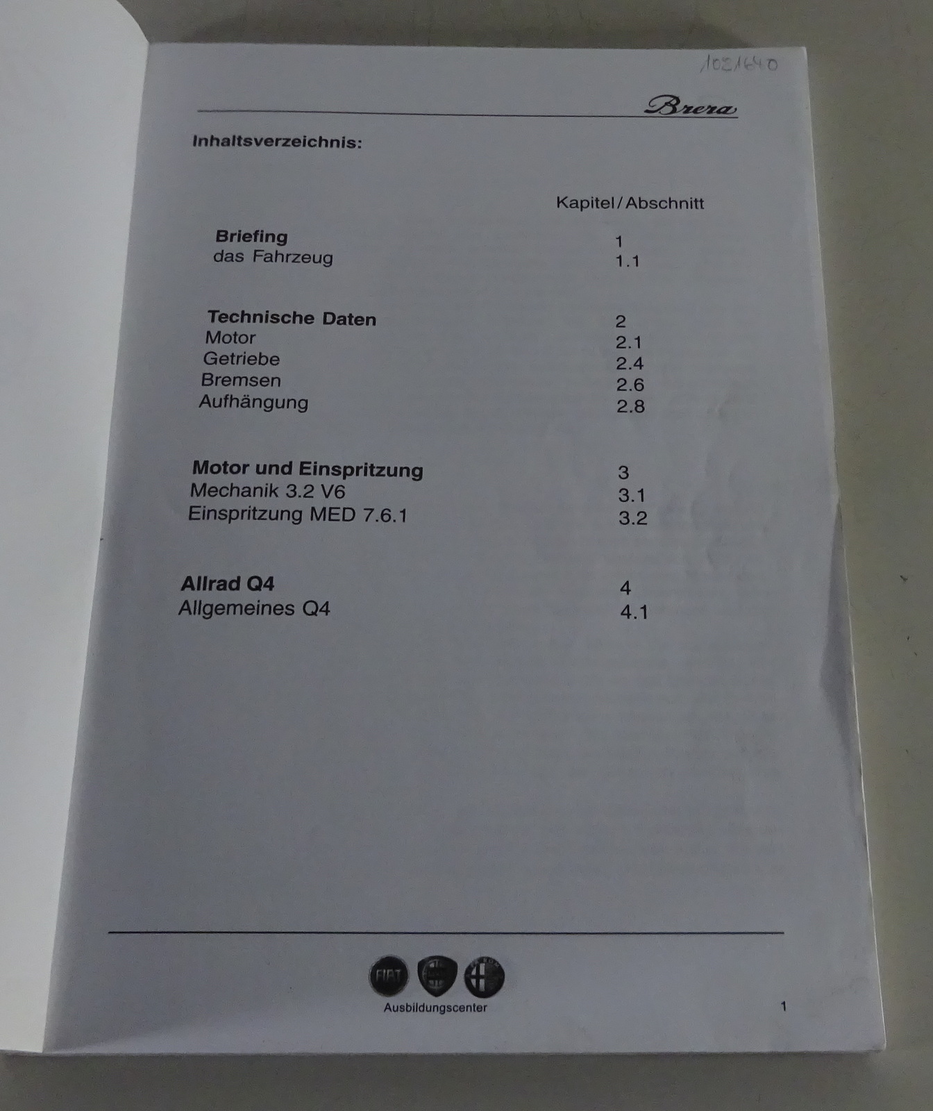 Schulungsunterlage / Technisches Training Alfa Romeo Brera inkl. Q4 Stand 2006
