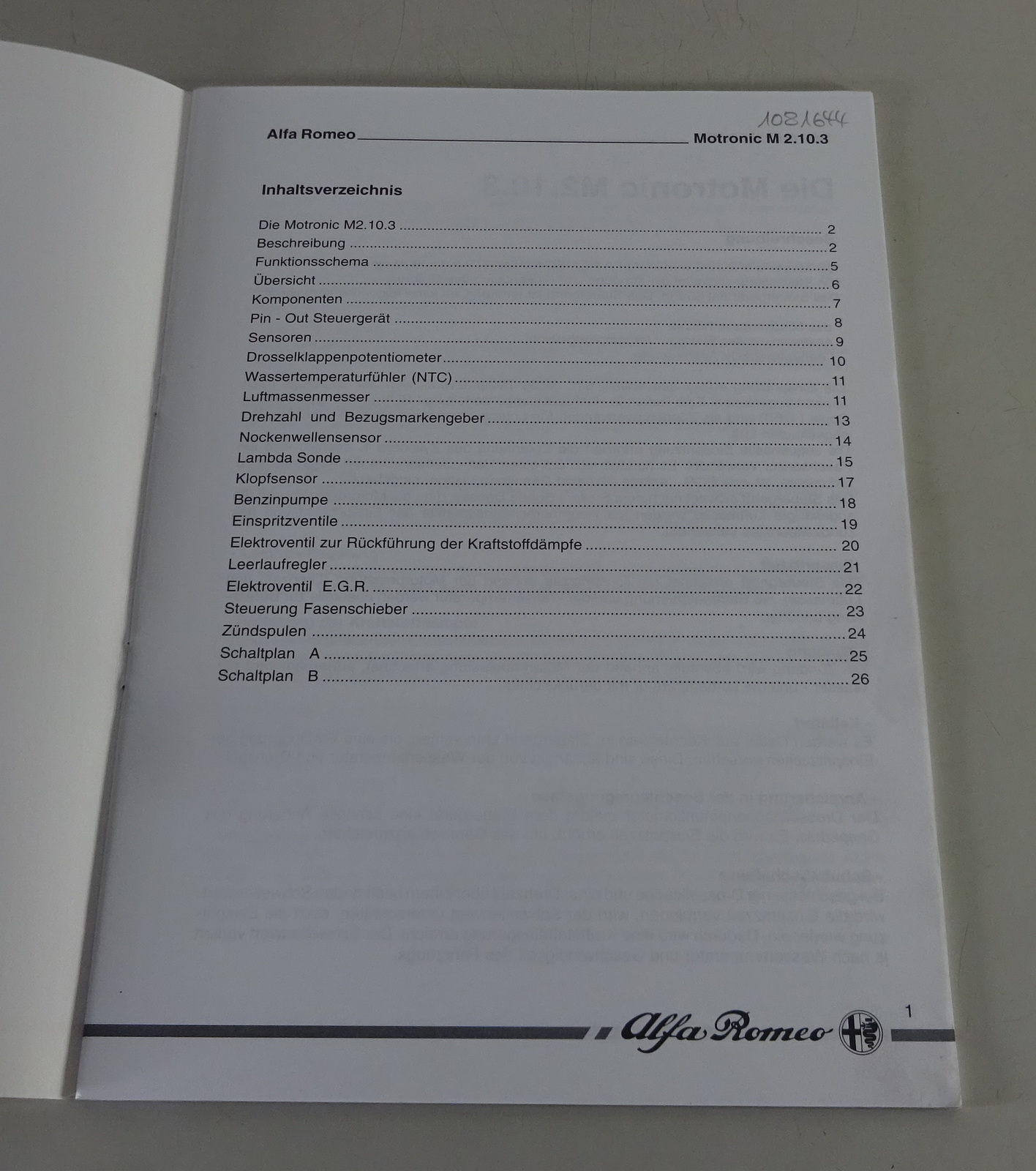 Schulungsunterlage / Technische Information original Alfa-Romeo