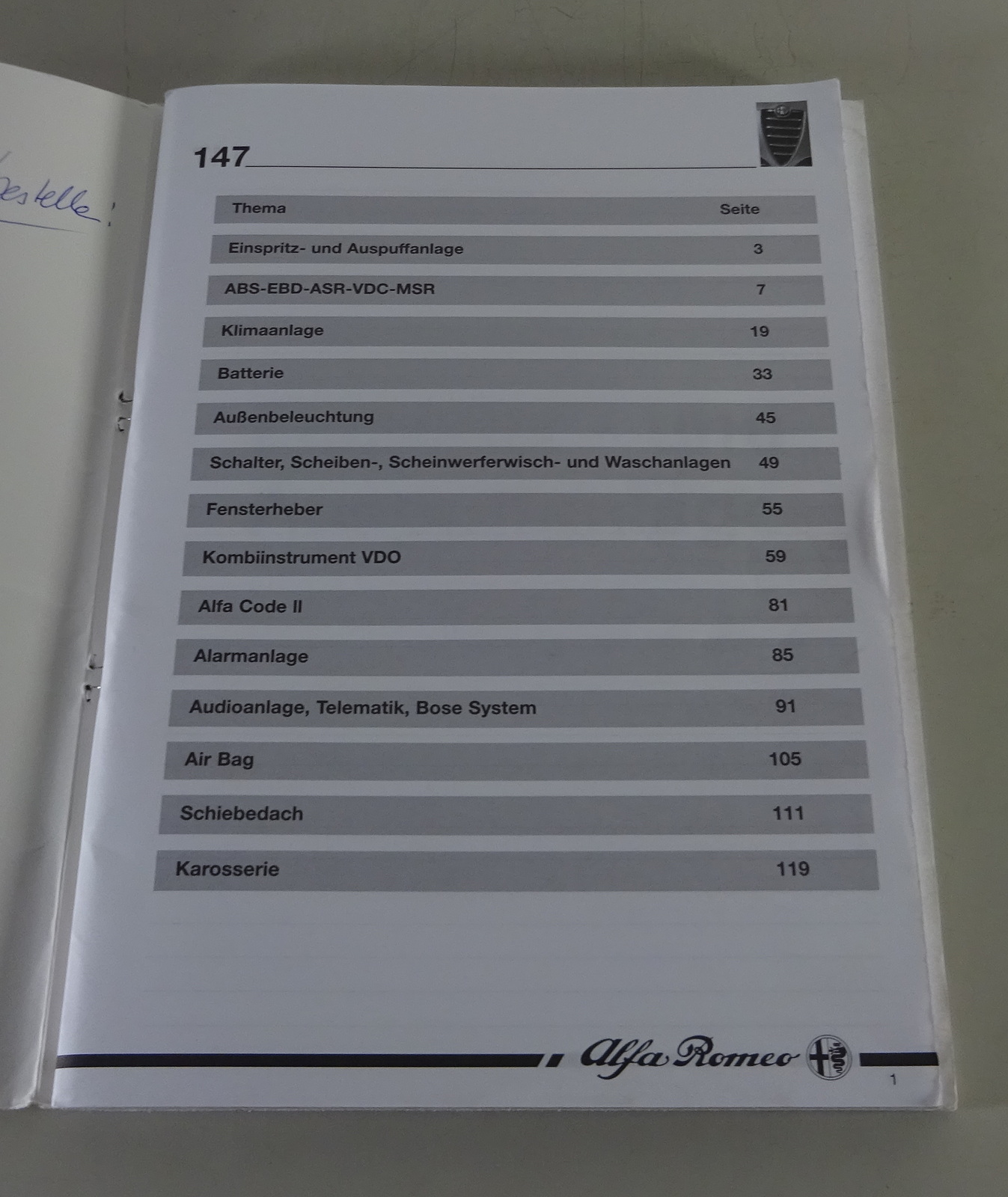 Produktinformationen "Schulungsunterlage / Einführungschrift Alfa Romeo 147 Stand 10/2000"