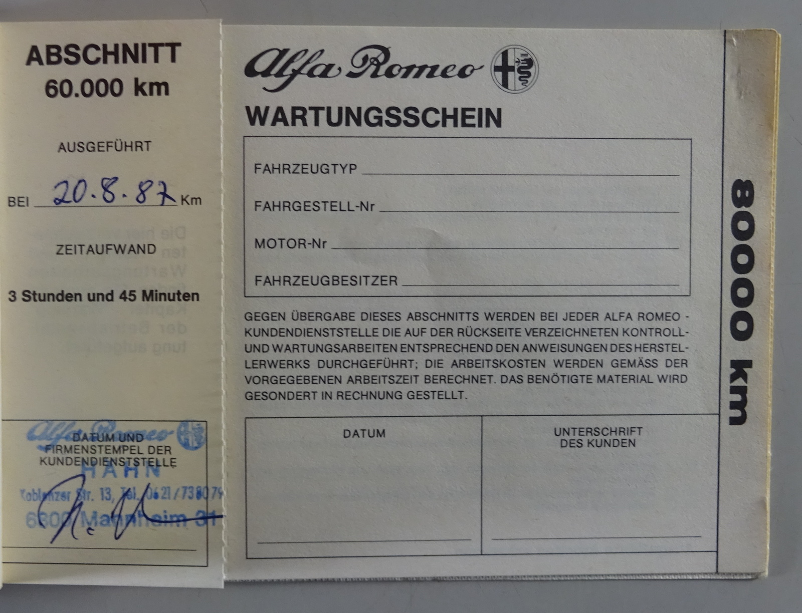 Inhalt: Betriebsanleitung, Serviceheft, Scheckheft mit Einträgen
