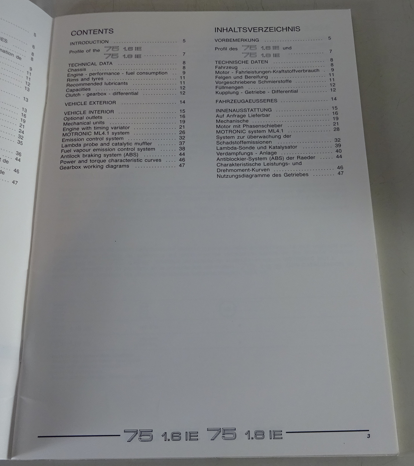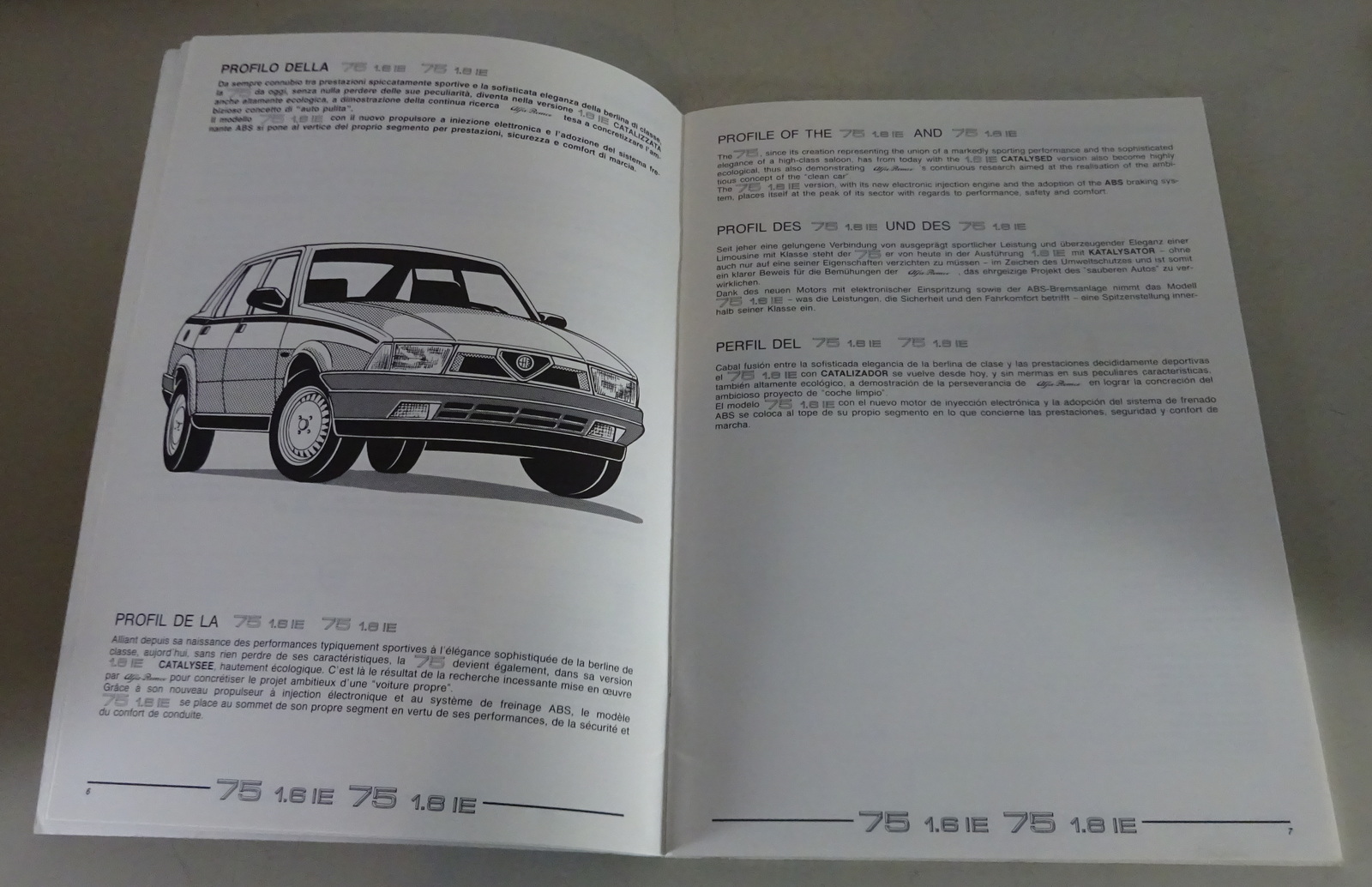 Product Bulletin / Einführungsschrift Alfa Romeo Alfa 75 1.6 IE / 1.8 IE St.1989