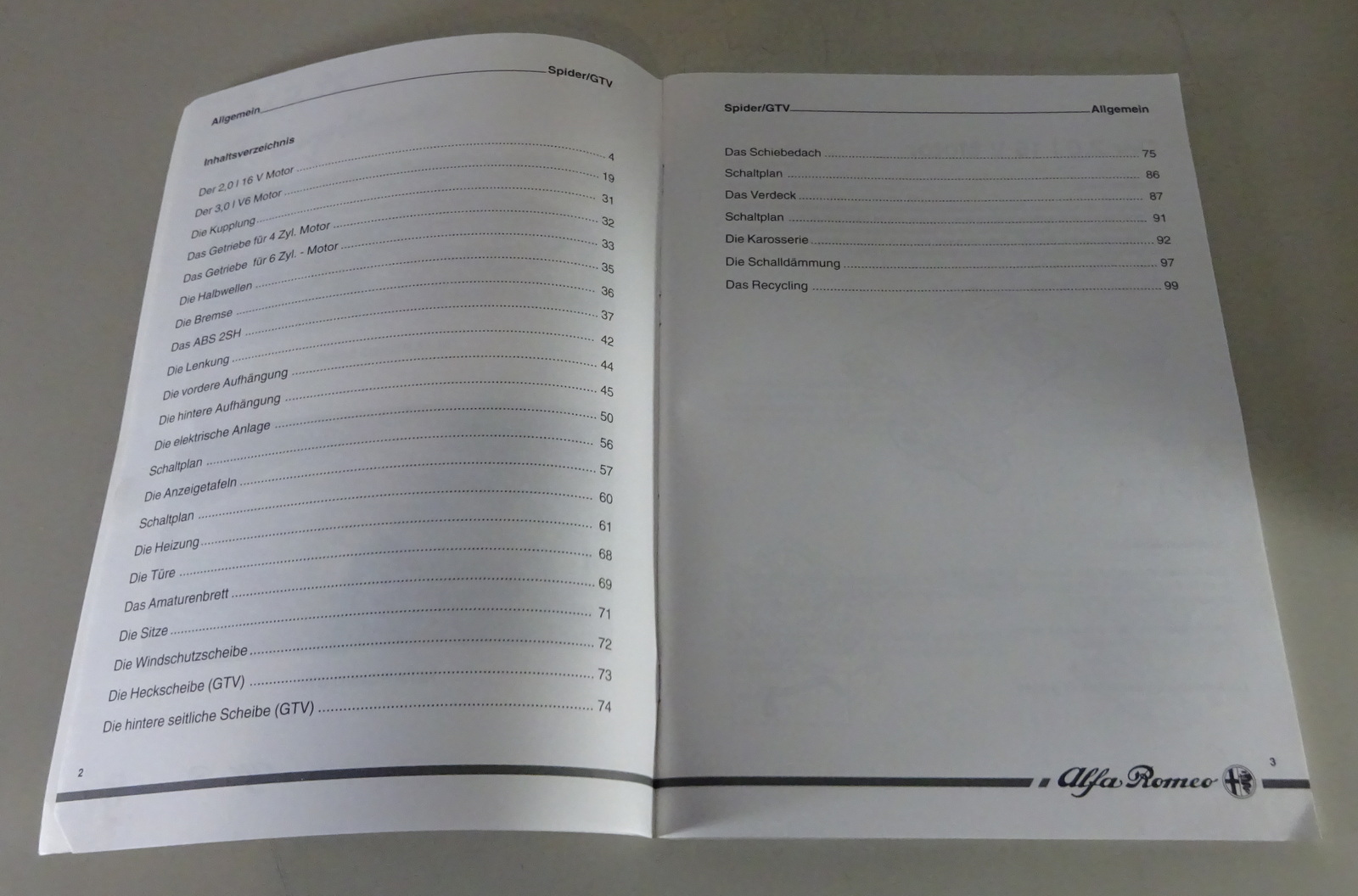 Schulungsunterlage / Technische Information Alfa Romeo Spider / GTV Typ 916 1995