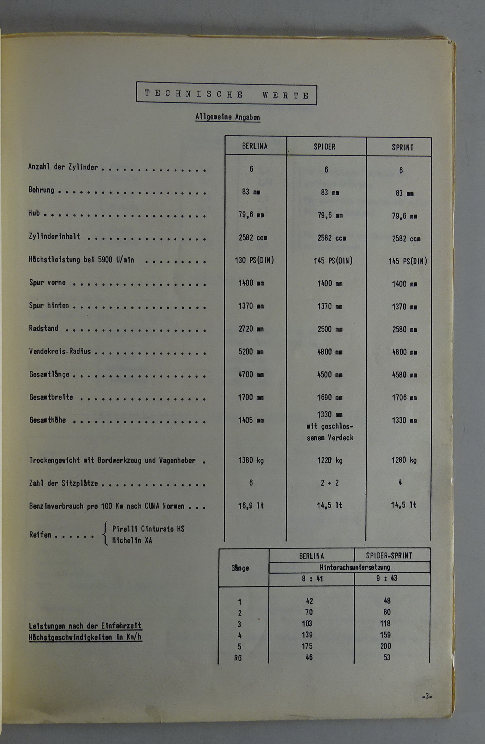 Werkstatthandbuch Technische Daten Alfa Romeo 2600 Berlina, Spider, Sprint 1963