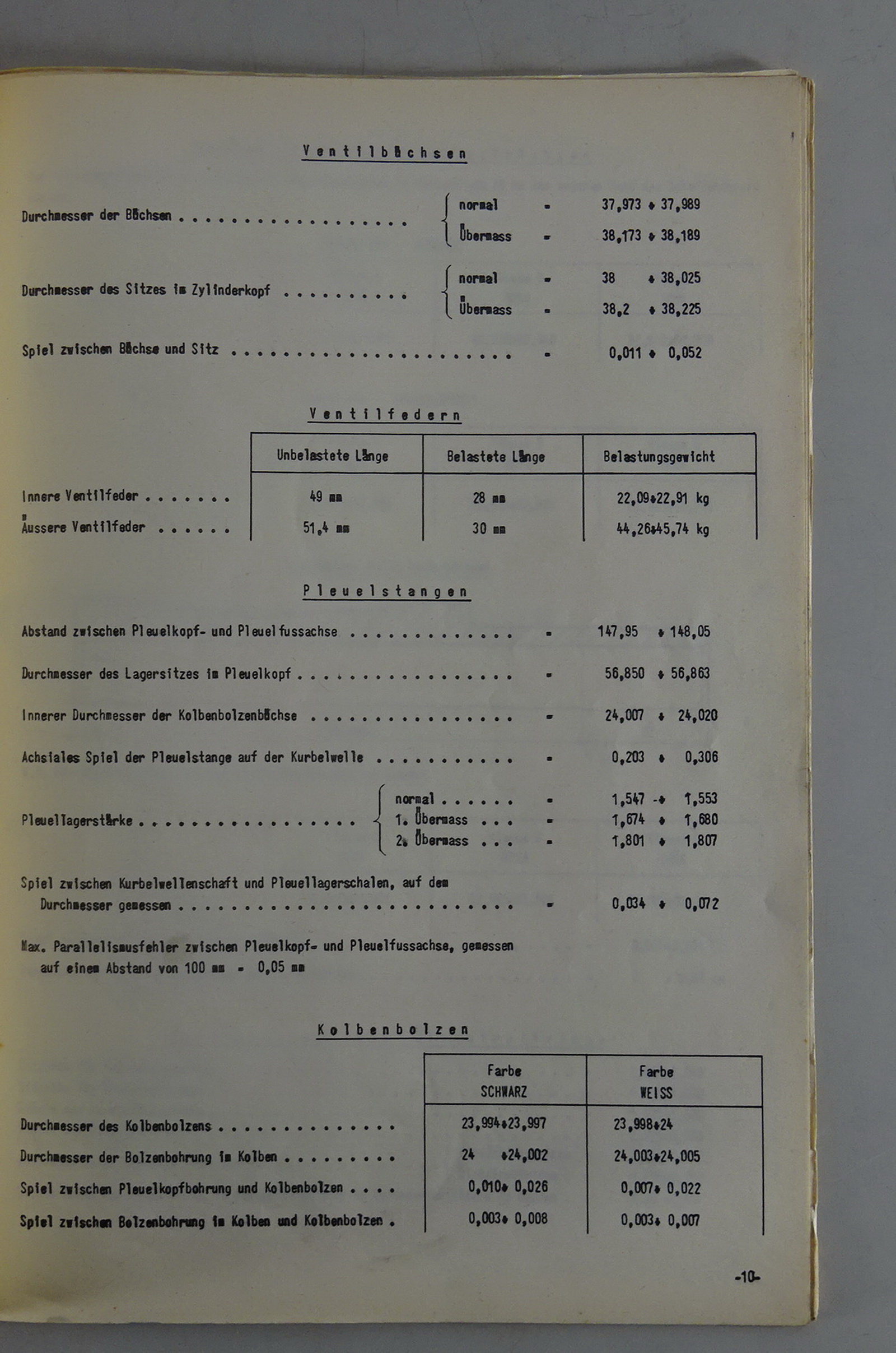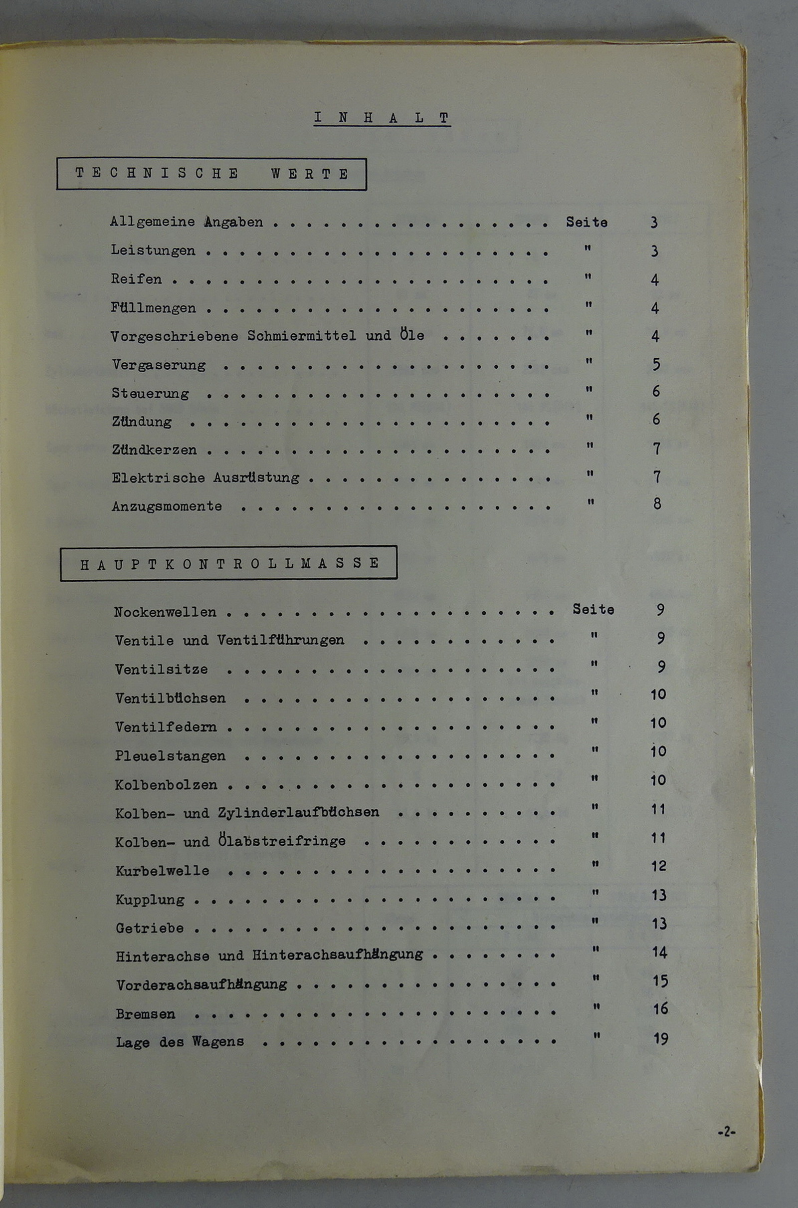 Inhalt: Technische Werte, Hauptkontrolmaße (siehe Foto)