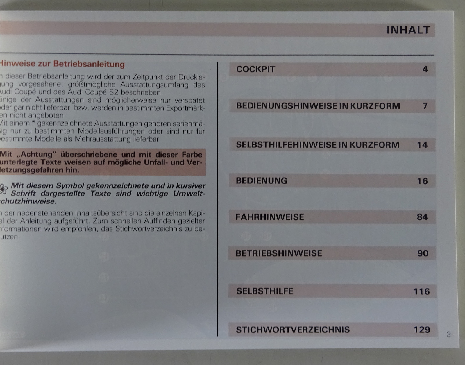Produktinformationen "Betriebsanleitung / Handbuch Audi Coupé / Coupé S2 | Stand 07/1993"
