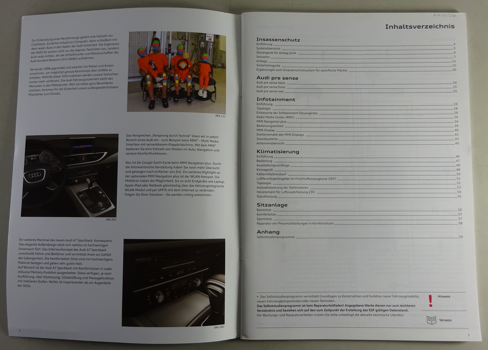 Selbststudienprogramm SSP 484 Audi A7 Sportback - Infotainment / usw. von 7/2010