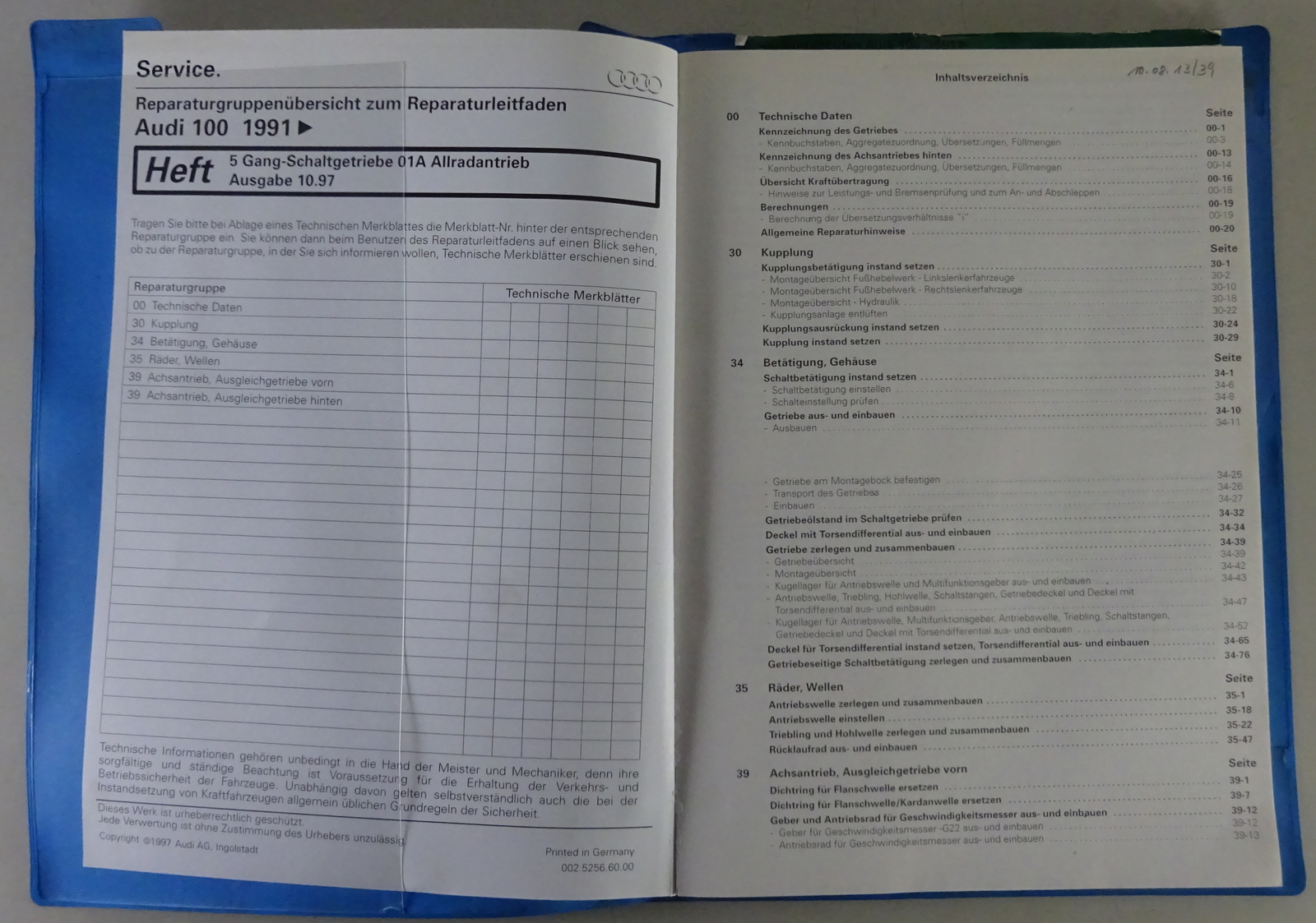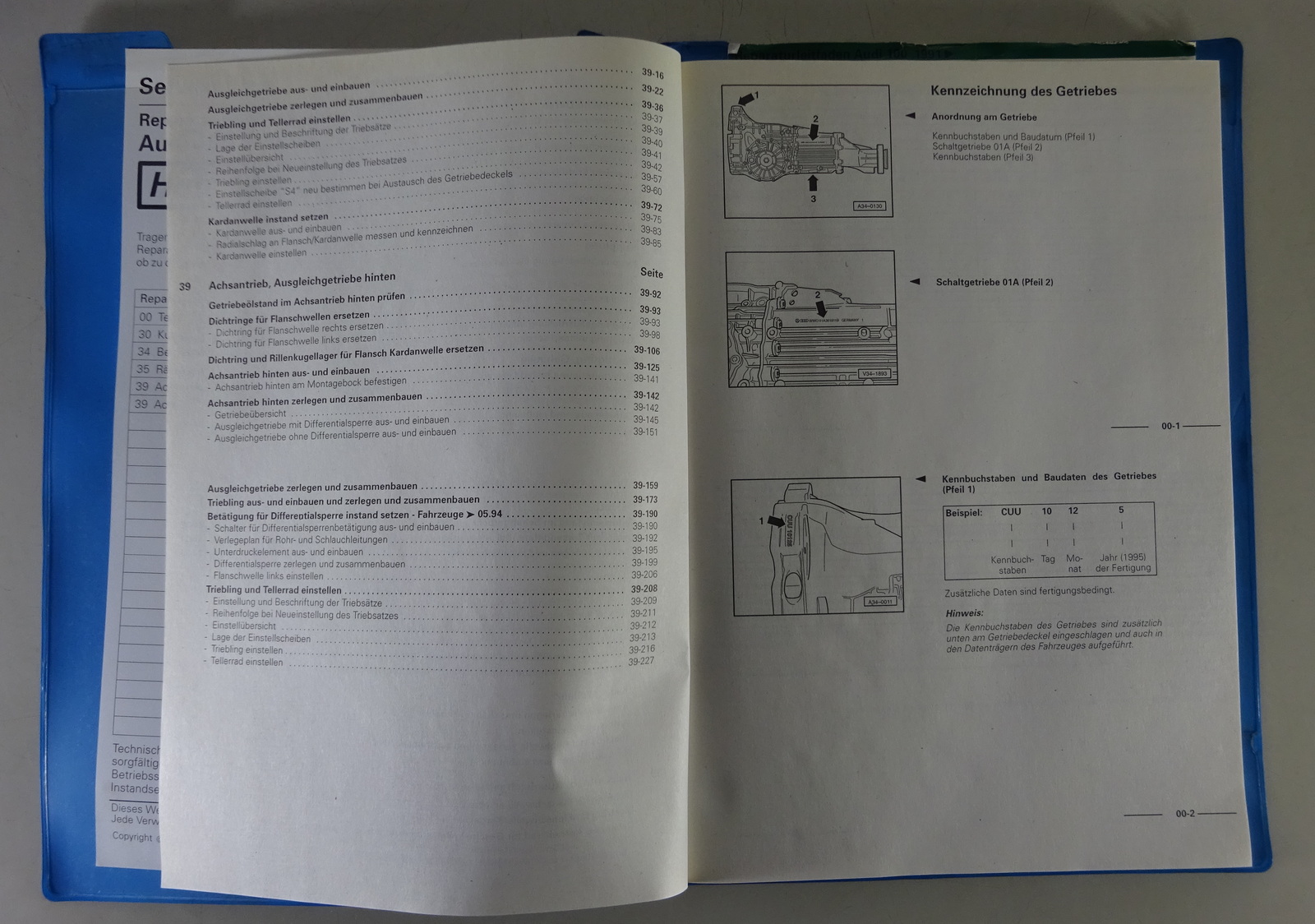 Werkstatthandbuch Audi 100 ab 1991 5 Gang Schaltgetriebe 01A Allradantrieb 10/97