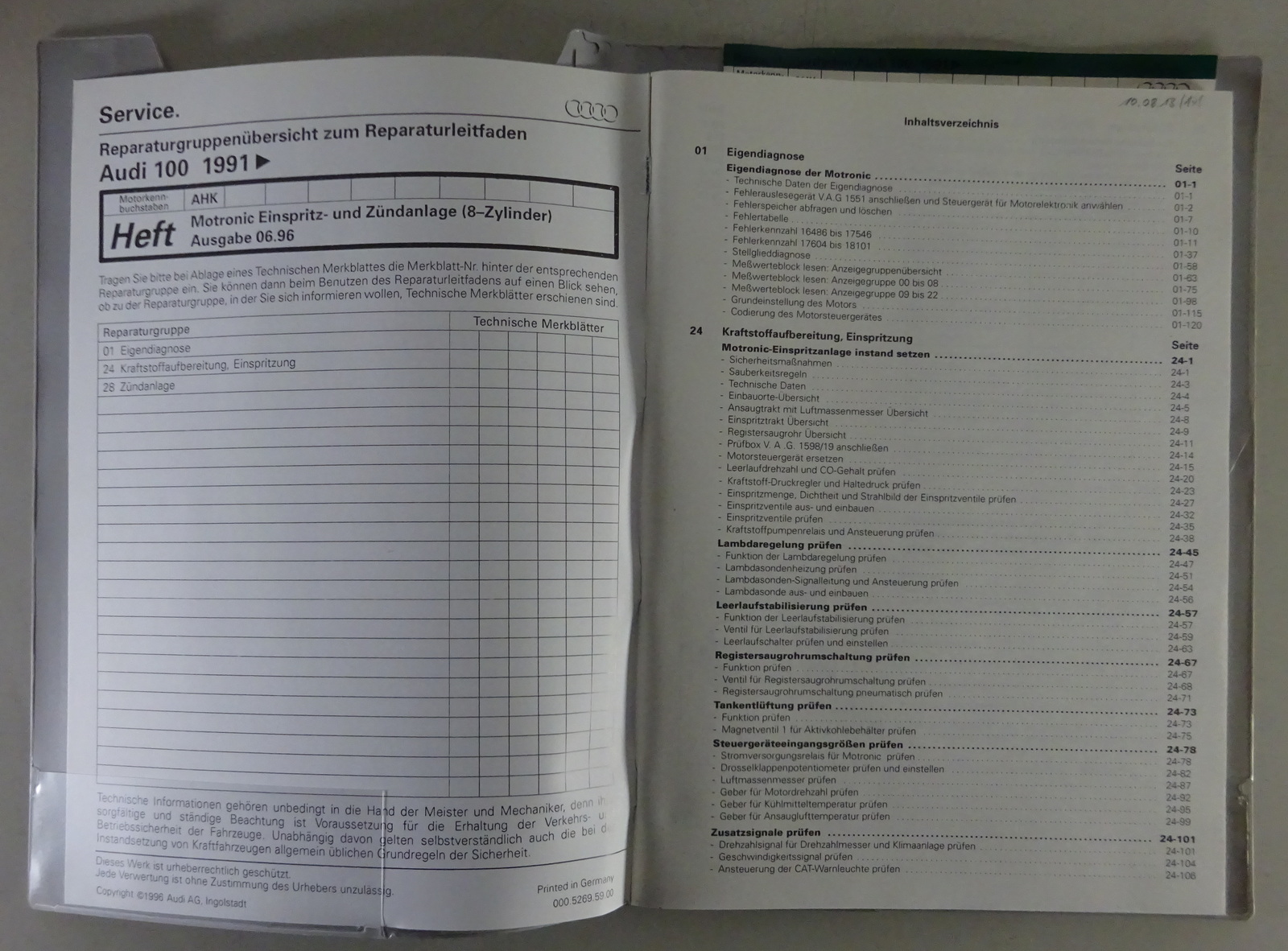Inhalt: Technische Daten, Kraftstoffsystem, Lambdaregelungen, Zündanlage, etc.