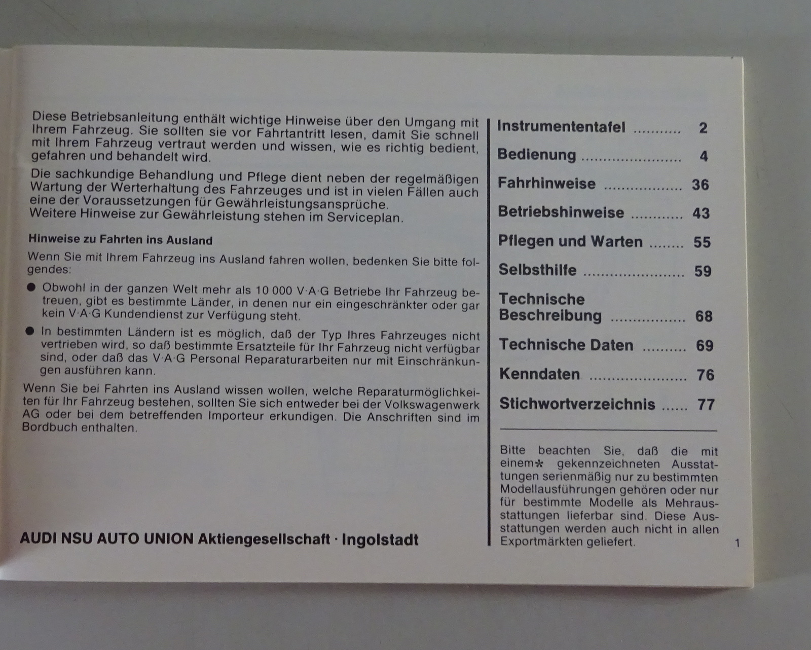 Betriebsanleitung | Audi Coupe Typ 81 | Stand 08/1982