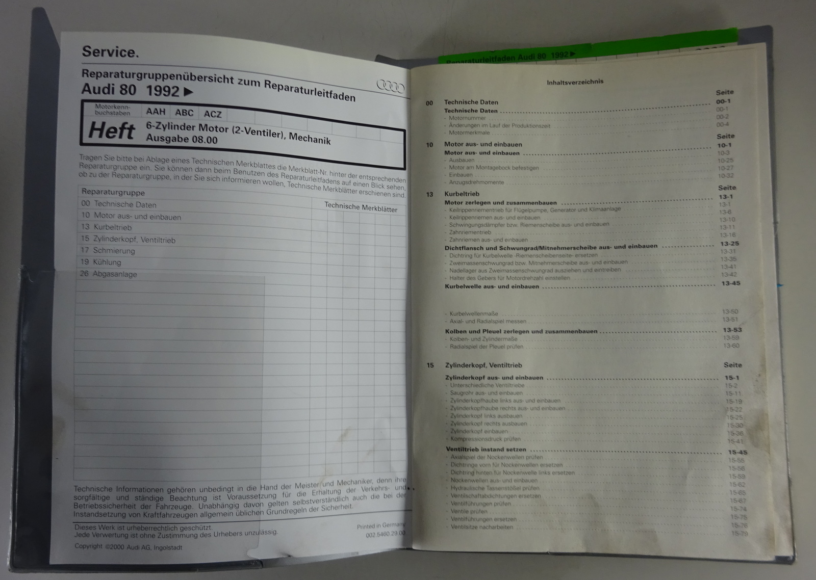 Werkstatthandbuch / Reparaturleitfaden Audi 80 B4 2,6l / 2,8l V6-Motor v. 8/2000