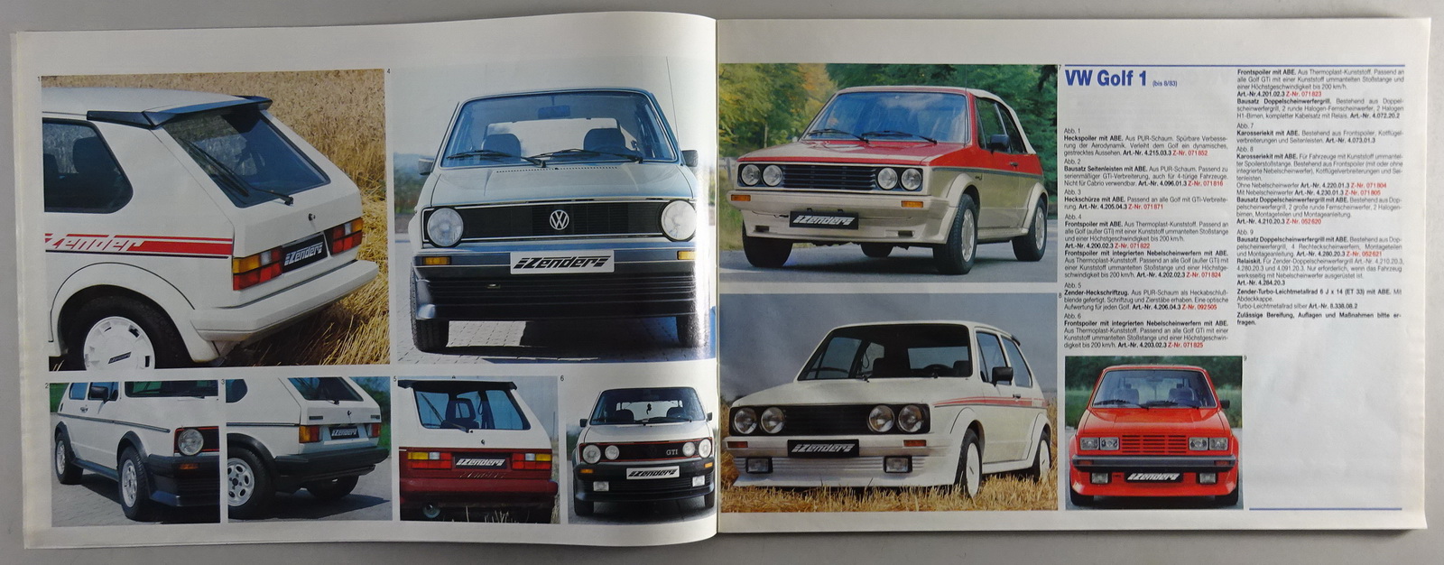 Produktinformationen "Prospekt Zender Tuning VW & Audi Karosserieteile / Felgen & Zubehör Stand 1984"