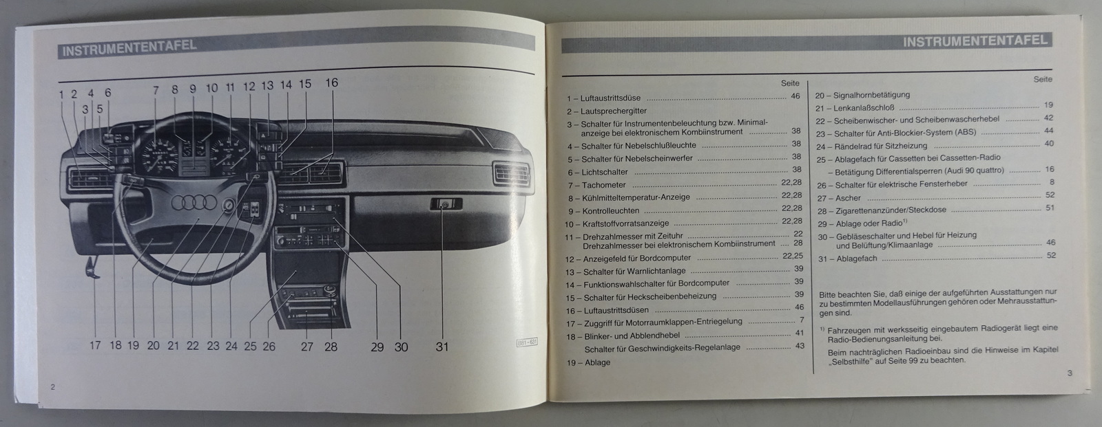 Betriebsanleitung / Handbuch Audi 90 / 90 quattro B2 Typ 81 + 85 Stand 02/1986