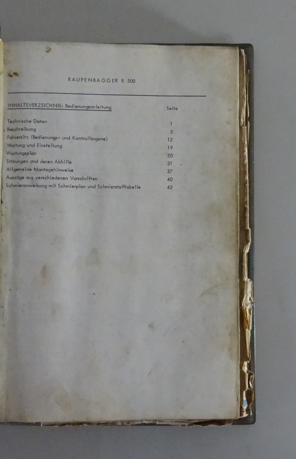 Produktinformationen "Teilekatalog + Betriebsanleitung Liebherr Raupenbagger R500 Stand 1965"