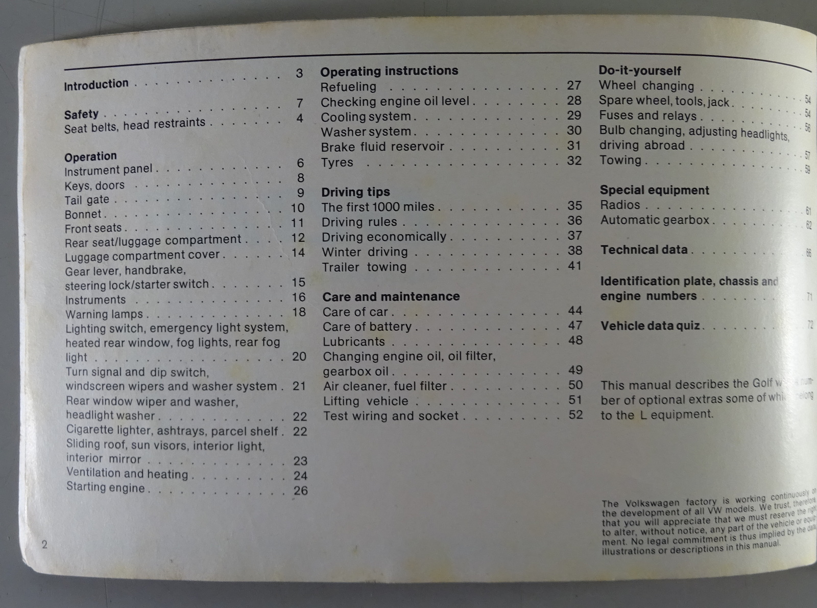 Bedienungsanleitung / Owner´s Manual | VW Golf I / 1 | Stand 01/1976
