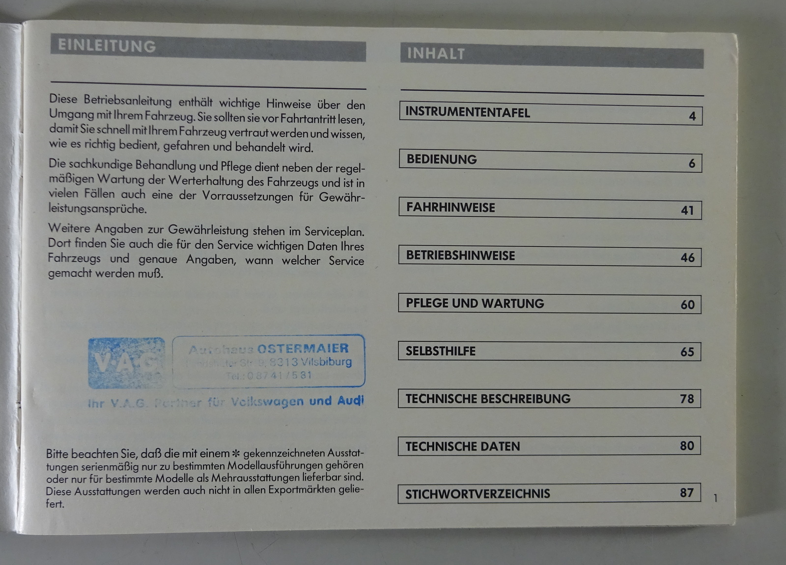 Inhalt: Betriebsanleitung, V.A.G Serviceplan mit Eintragungen, V.A.G Service System