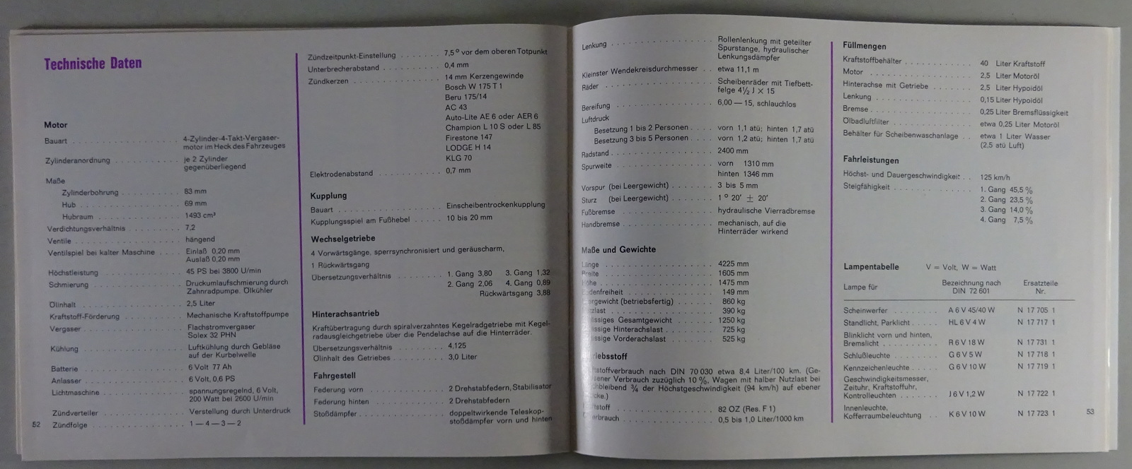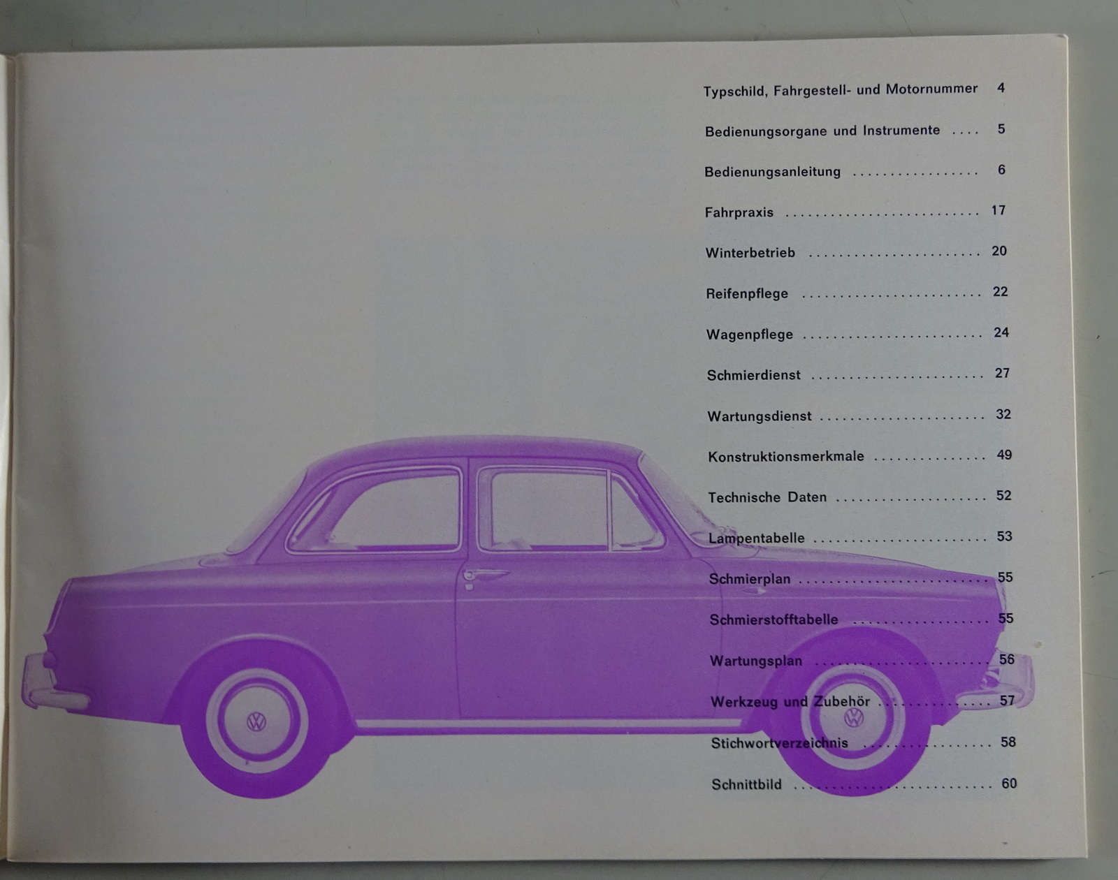 Bedienungsanleitung / Handbuch VW 1500 Typ 3 Stand 08/1961
