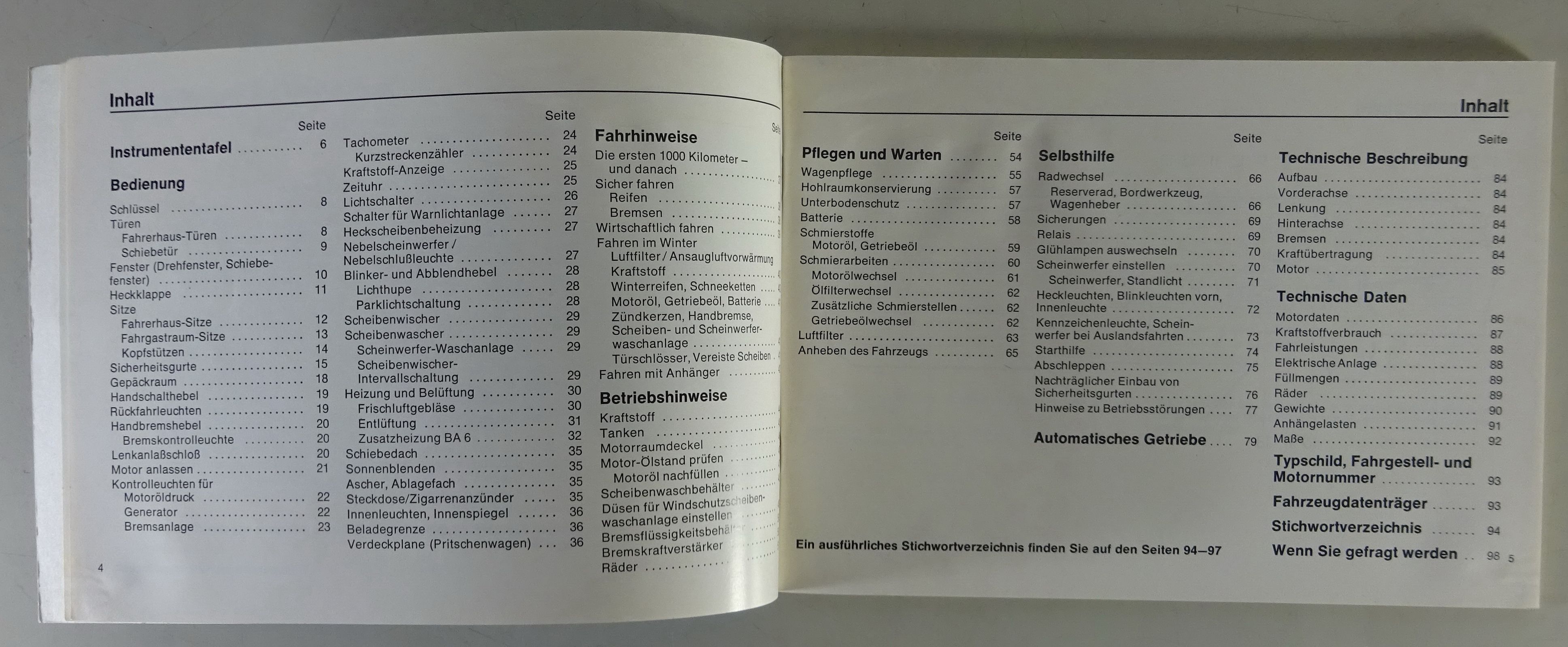 Betriebsanleitung VW T3 Bus / Transporter / Pritsche / Doka Stand 08/1980