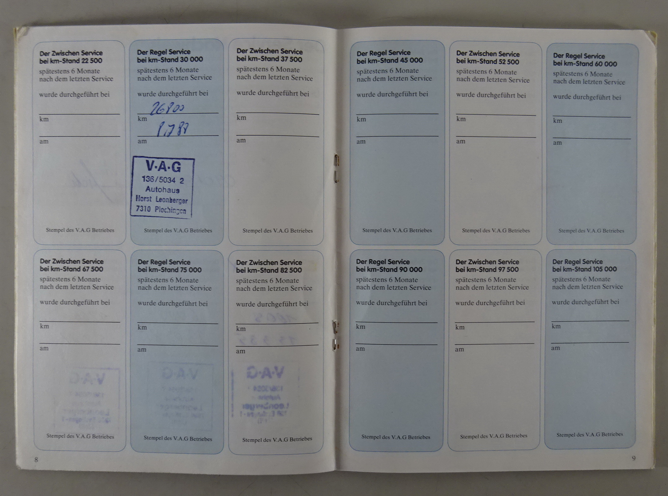Inhalt: Betriebsanleitung, Scheckheft mit Einträgen bis 26800Km, V.A.G. Service Europa