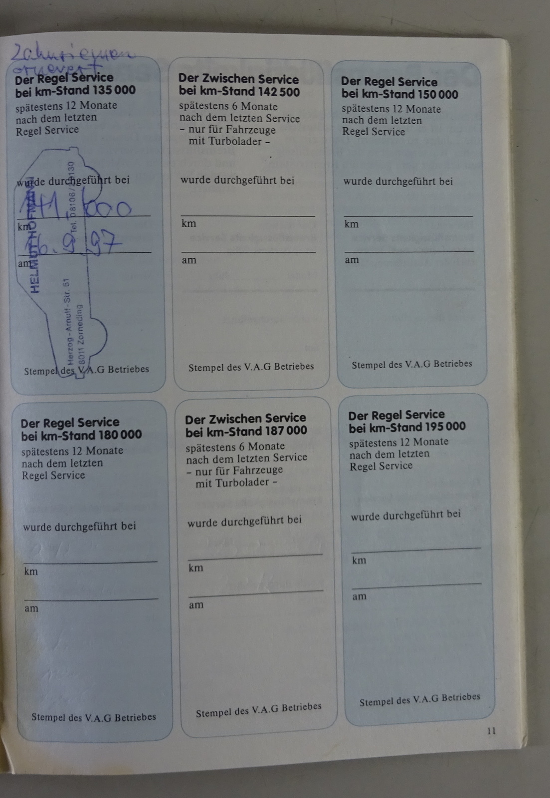 Inhalt: Betriebsanleitung, VW Serviceheft mit Eintragungen, V.A.G Service Karte Europa