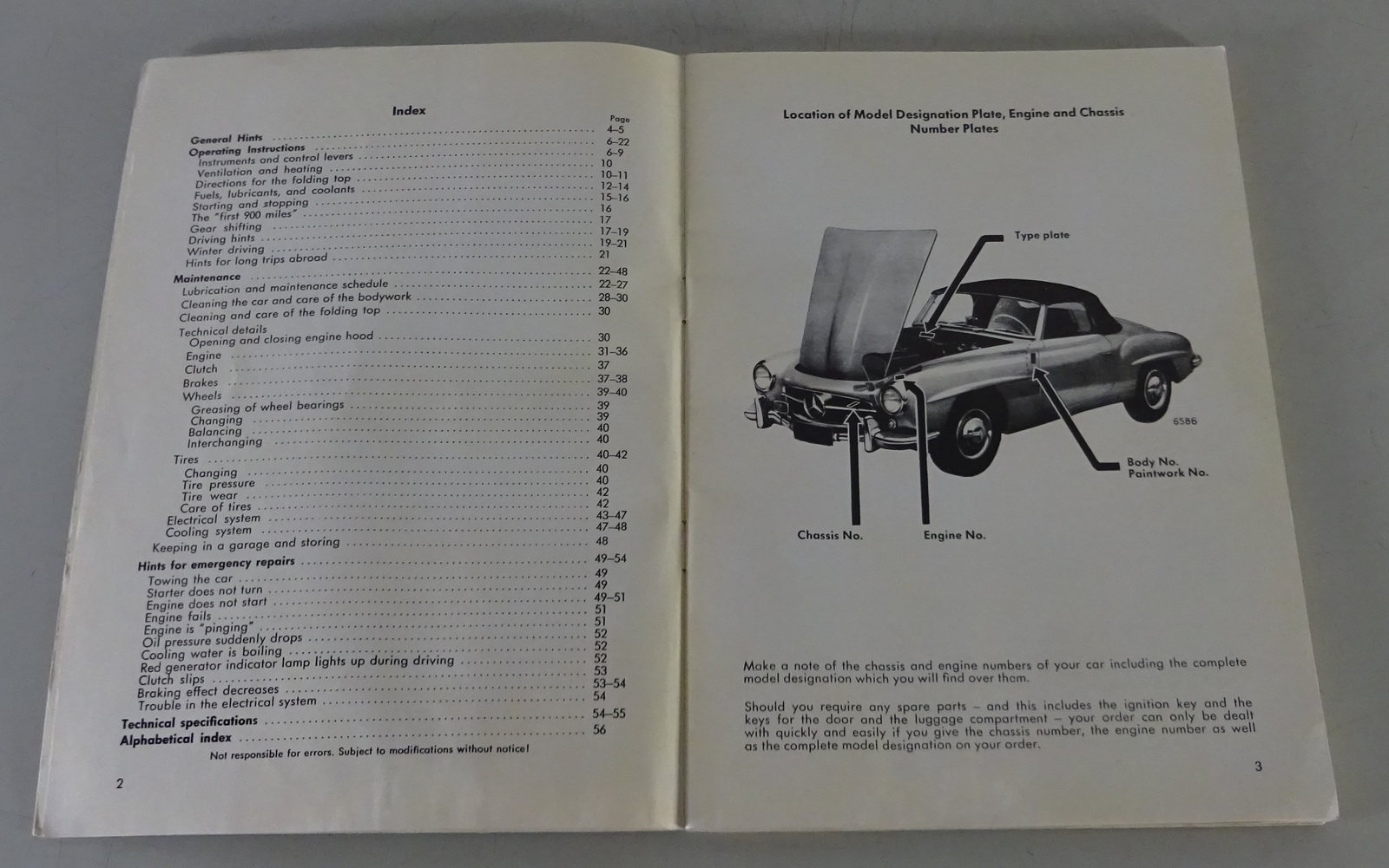 Owner´s Manual / Handbook Mercedes-Benz 190 SL R121 Roadster printed 1968