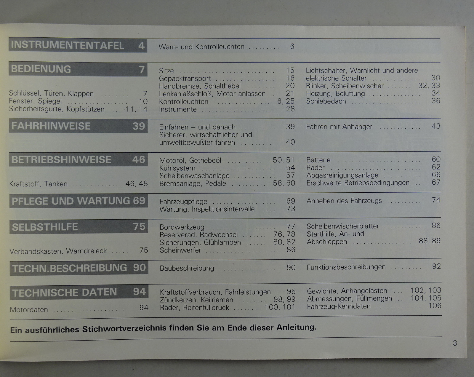Inhalt: Technische Daten, Beschreibung, Bedienung, Pflege/Wartung, Betriebsstoffe, Selbsthilfe etc.