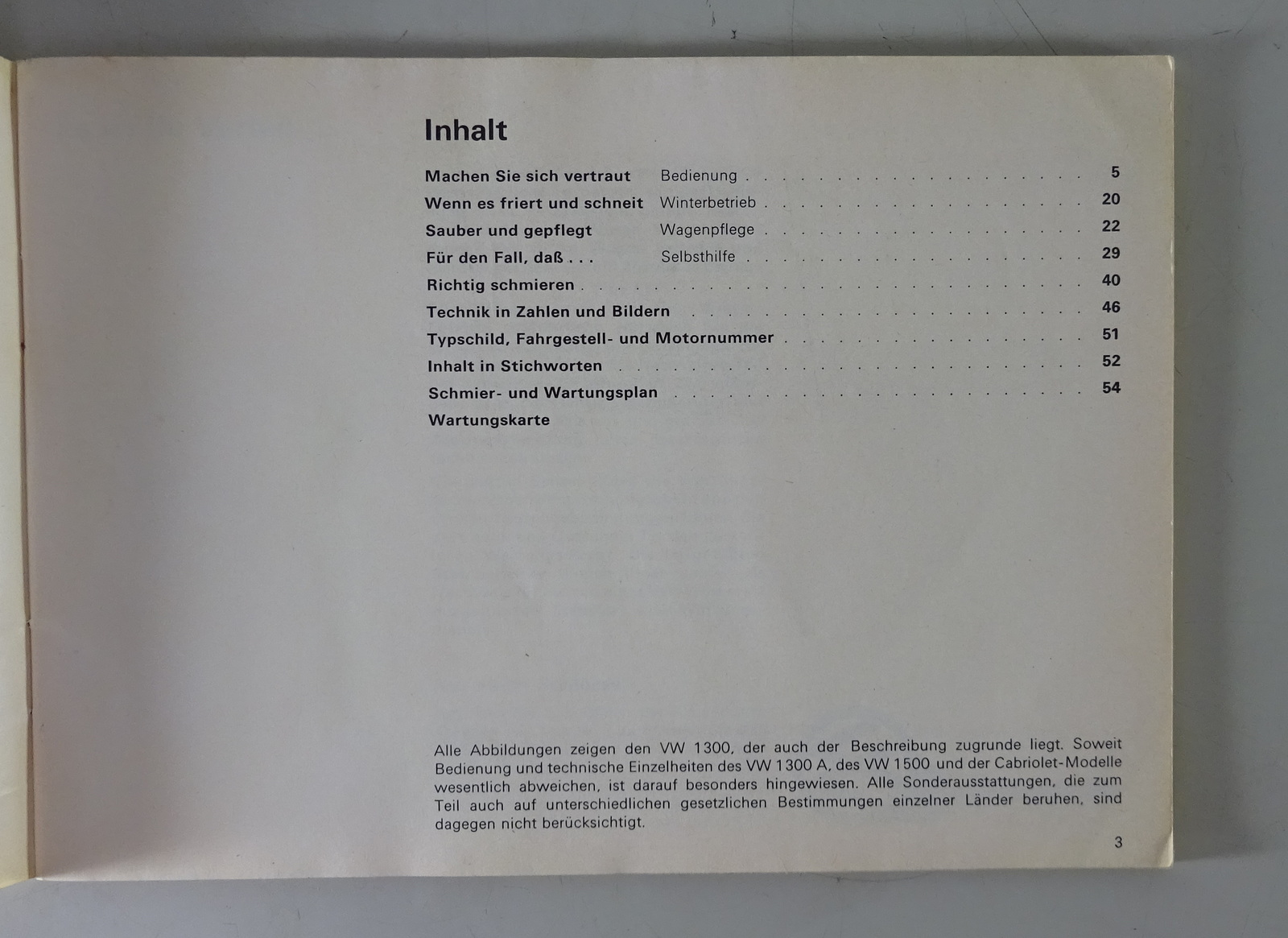 Bordmappe + Betriebsanleitung VW Käfer 1300 / 1500 inkl. Cabrio Stand 08/1966