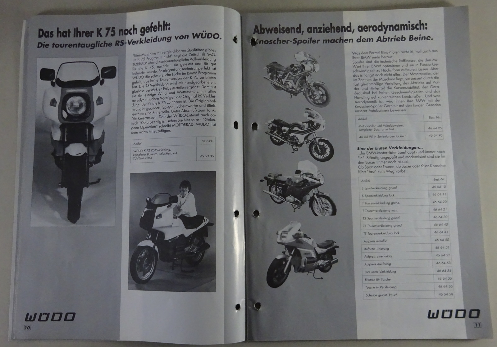 Zubehörkatalog von WüDo für BMW Motorräder R45 / R65 / R80 / usw. Stand 1989