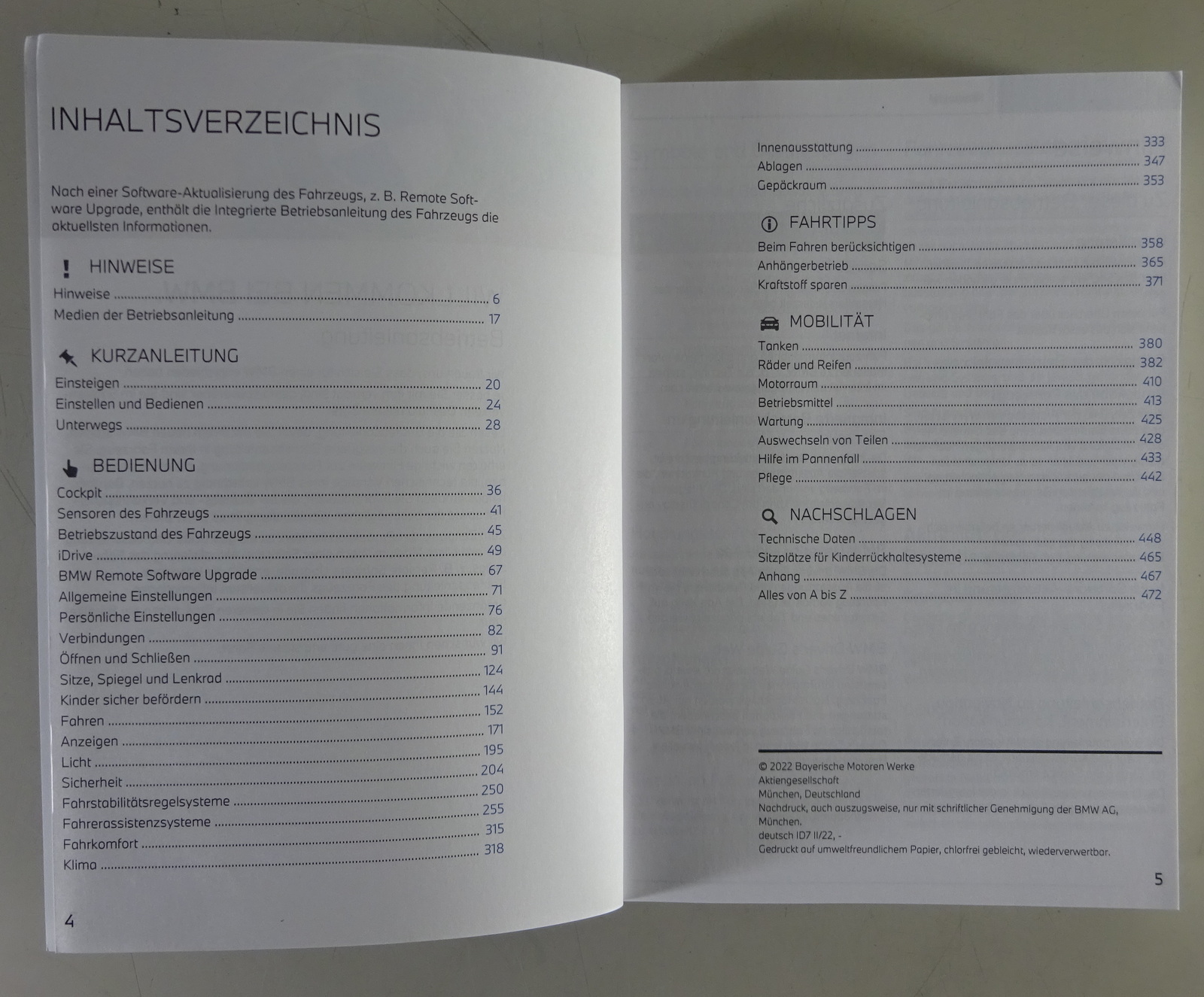 Inhalt: Betriebsanleitung, BMW Unfall- und Pannenhotline, EU-Konformitätserklärungen