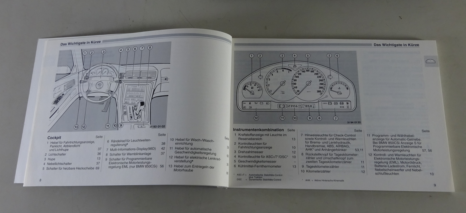 Bordmappe + Betriebsanleitung BMW 8er E31 840 Ci + 850 Ci / CSi Stand 09/1993