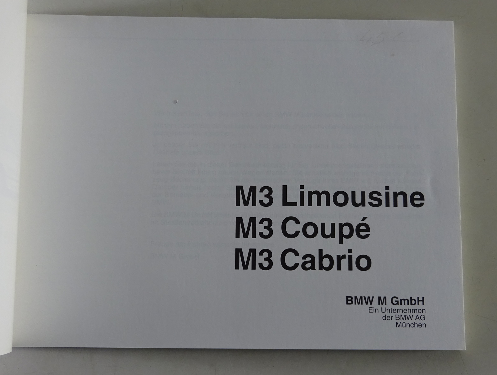Bordmappe + Betriebsanleitung BMW 3er E36 M3 Limousine, Cabrio, Coupe Stand 1994