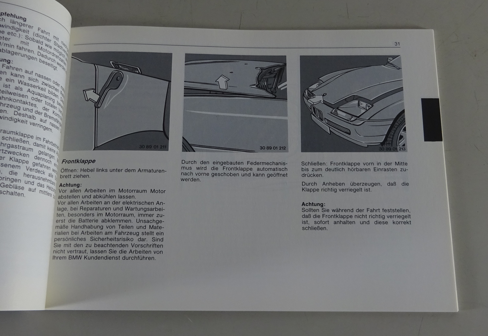 Betriebsanleitung / Handbuch BMW Z1 E30 (Z) Roadster Stand 10/1988