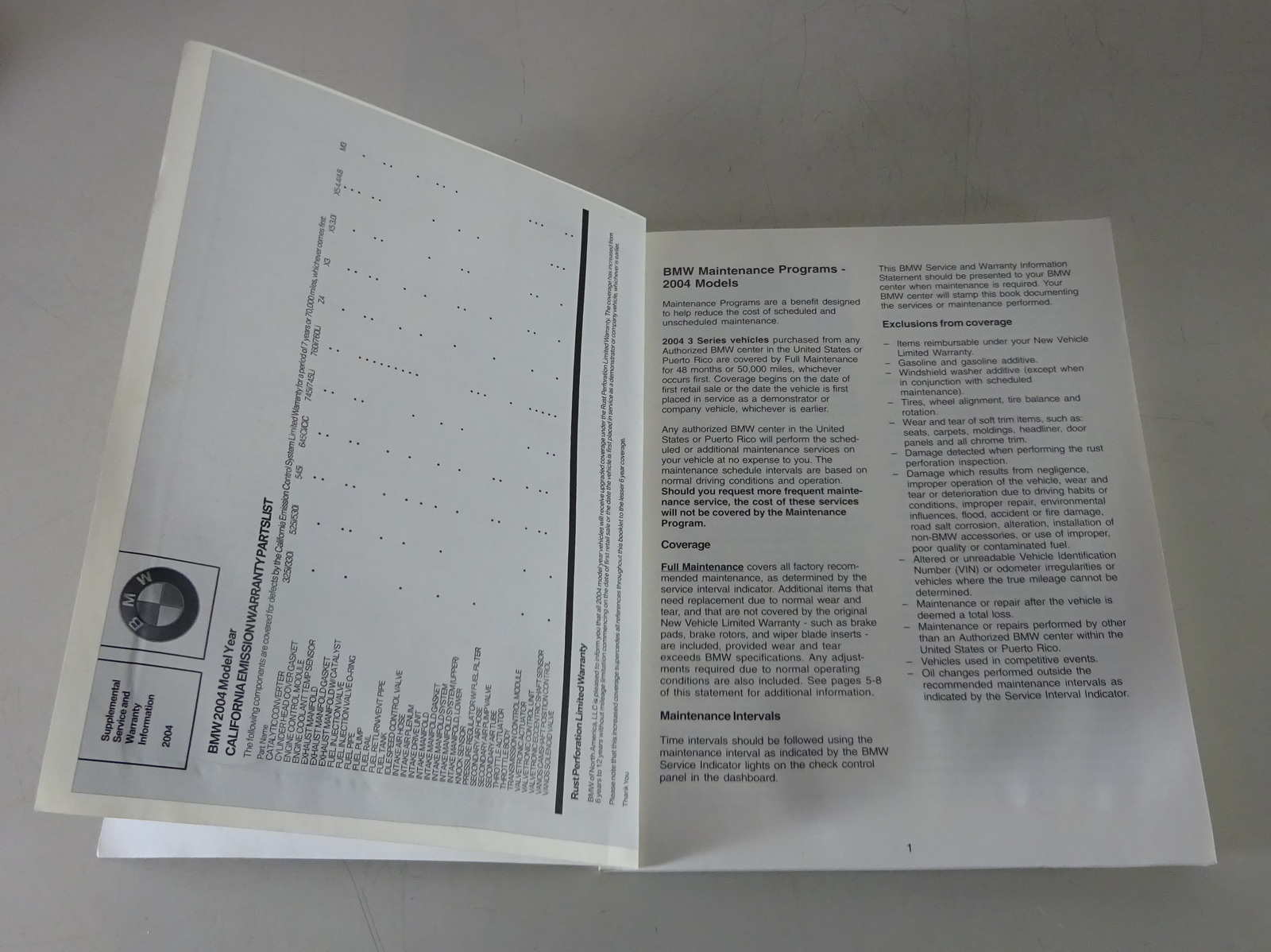 Service Schedule blanco BMW E46 Sedan, Convertible, Wagon (USA) from 09/2003