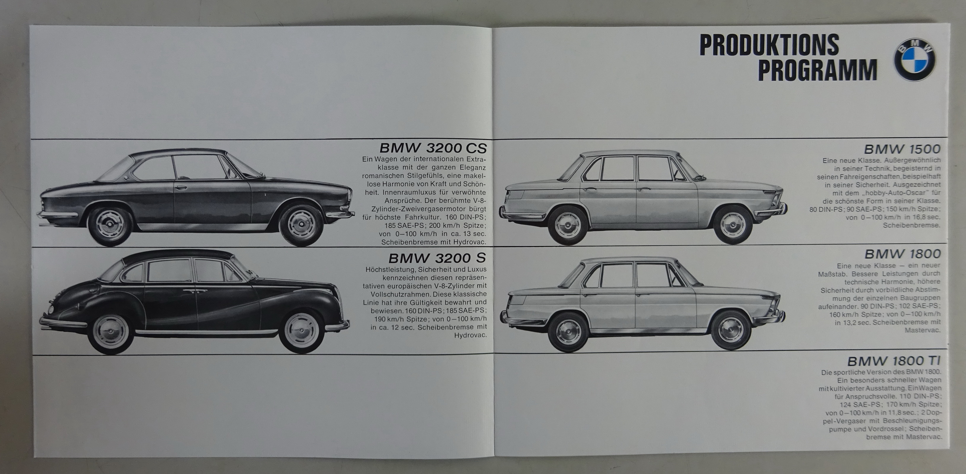 Produktinformationen "Prospekt Programmübersicht BMW 3200 CS, 1500, 1800, LS, 700 Stand 09/1963"