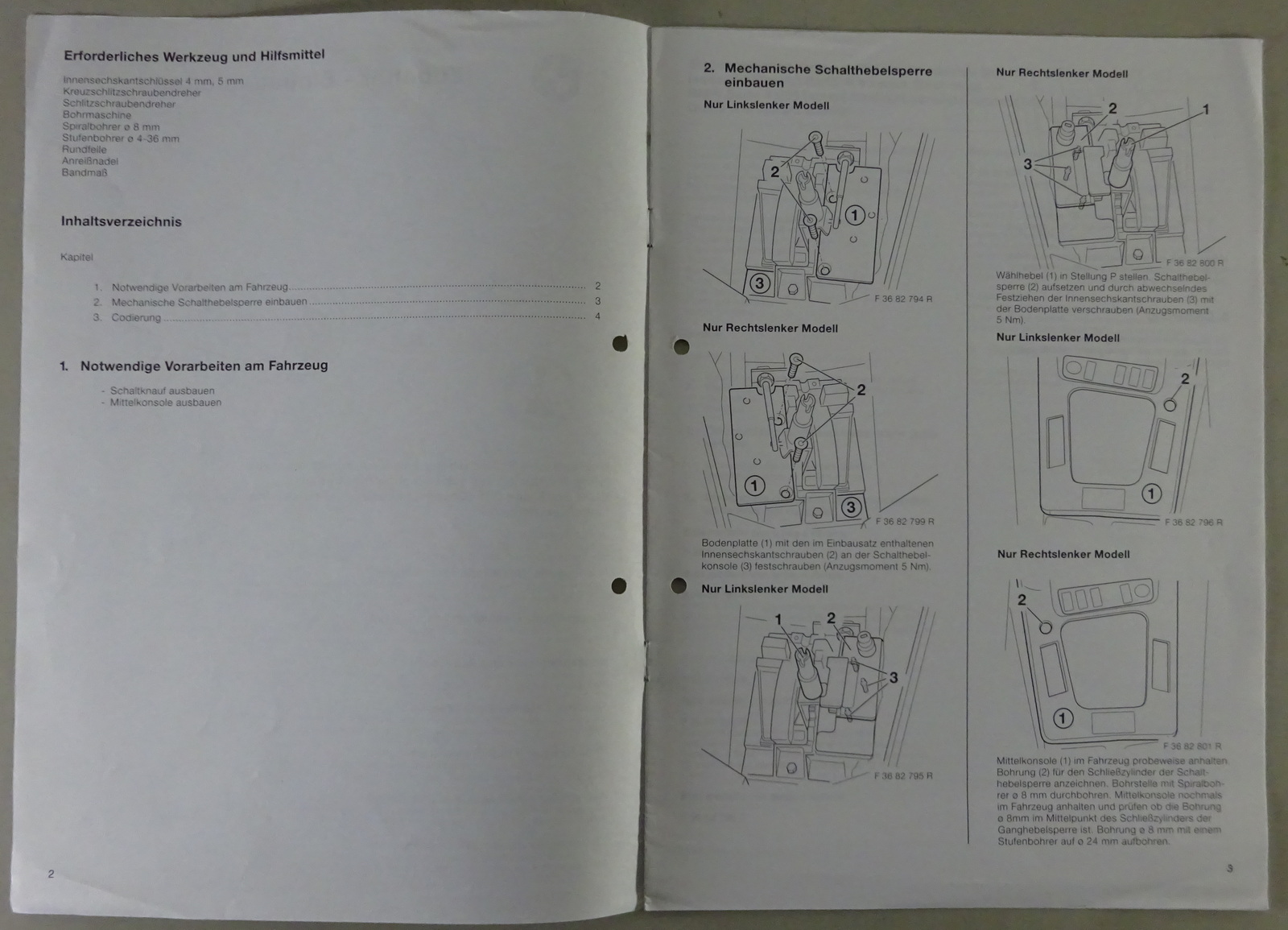 Einbauanleitung BMW 3er E36 Mechanische Schalthebelsperre Automatikgetriebe 1/96