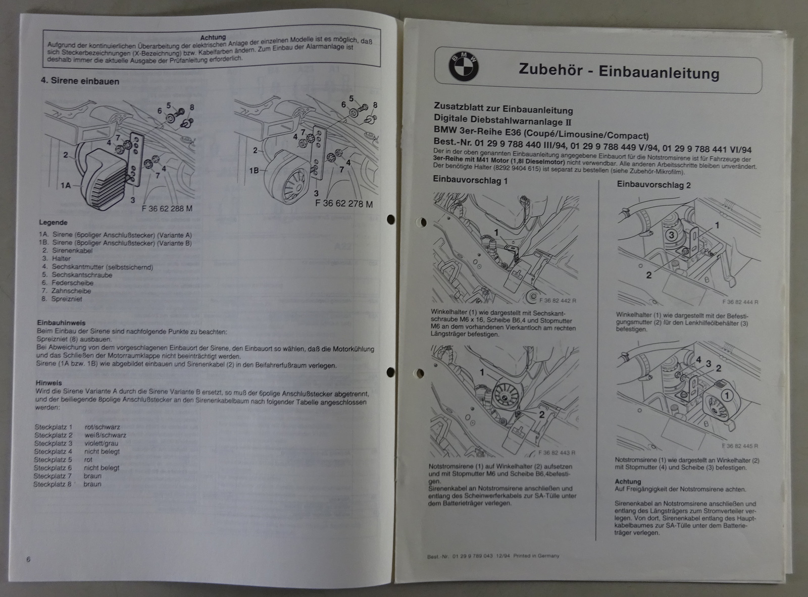 Einbauanleitung BMW 3er E36 Digitale Diebstahlwarnanlage II Linkslenker 03/1994