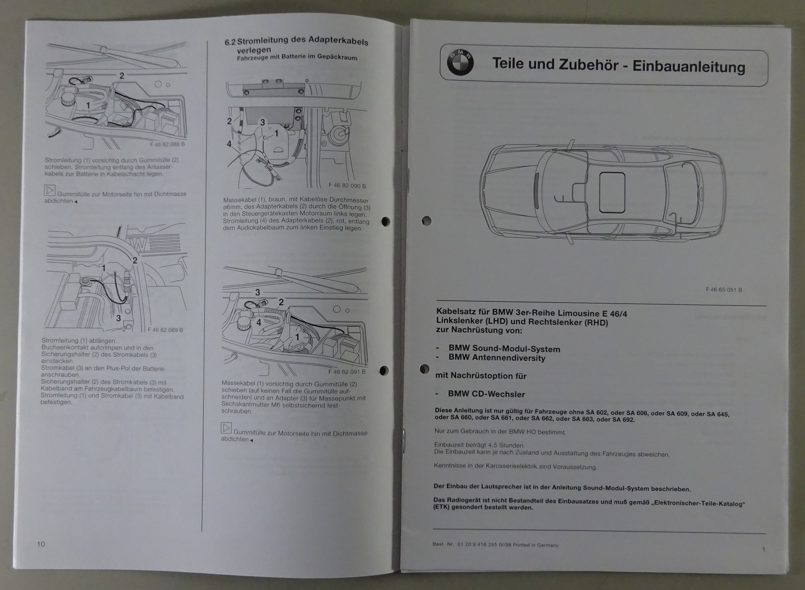 Einbauanleitung BMW 3er E46 Limousine Einbausatz Sound-Modul-System Stand 4/1998