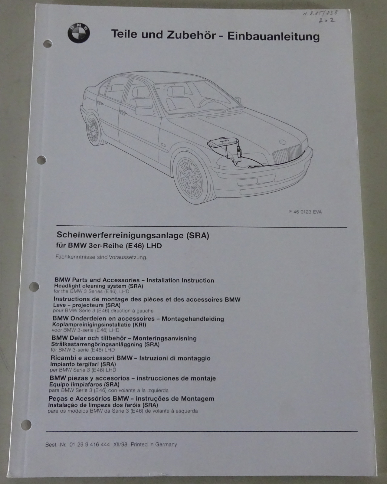 Produktinformationen "Einbauanleitung BMW 3er E46 Scheinwerferreinigungsanlage (SRA) Stand 12/1998"