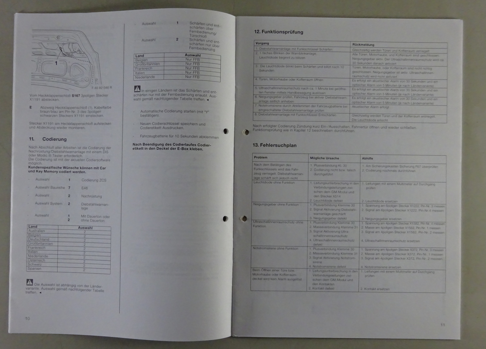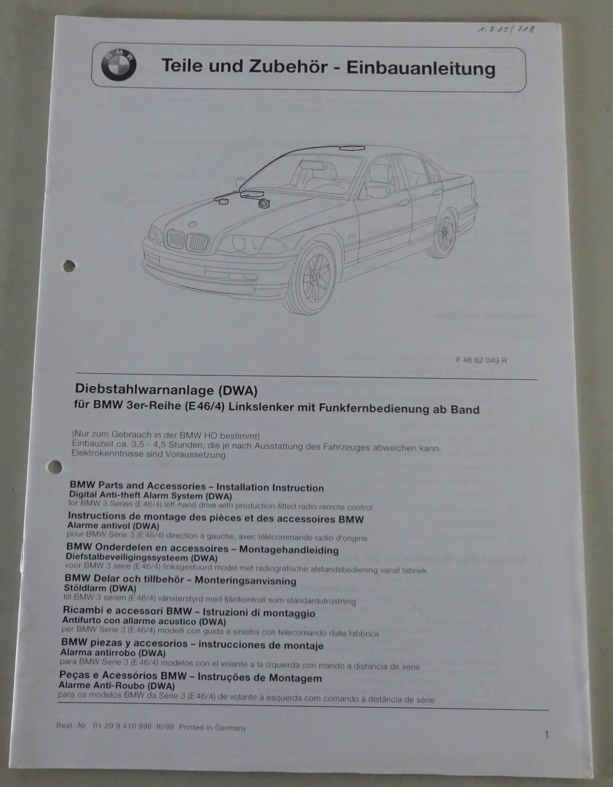Einbauanleitung BMW 3er E46 Diebstahlwarnanlage + Funkfernbedienung Stand 3/1998