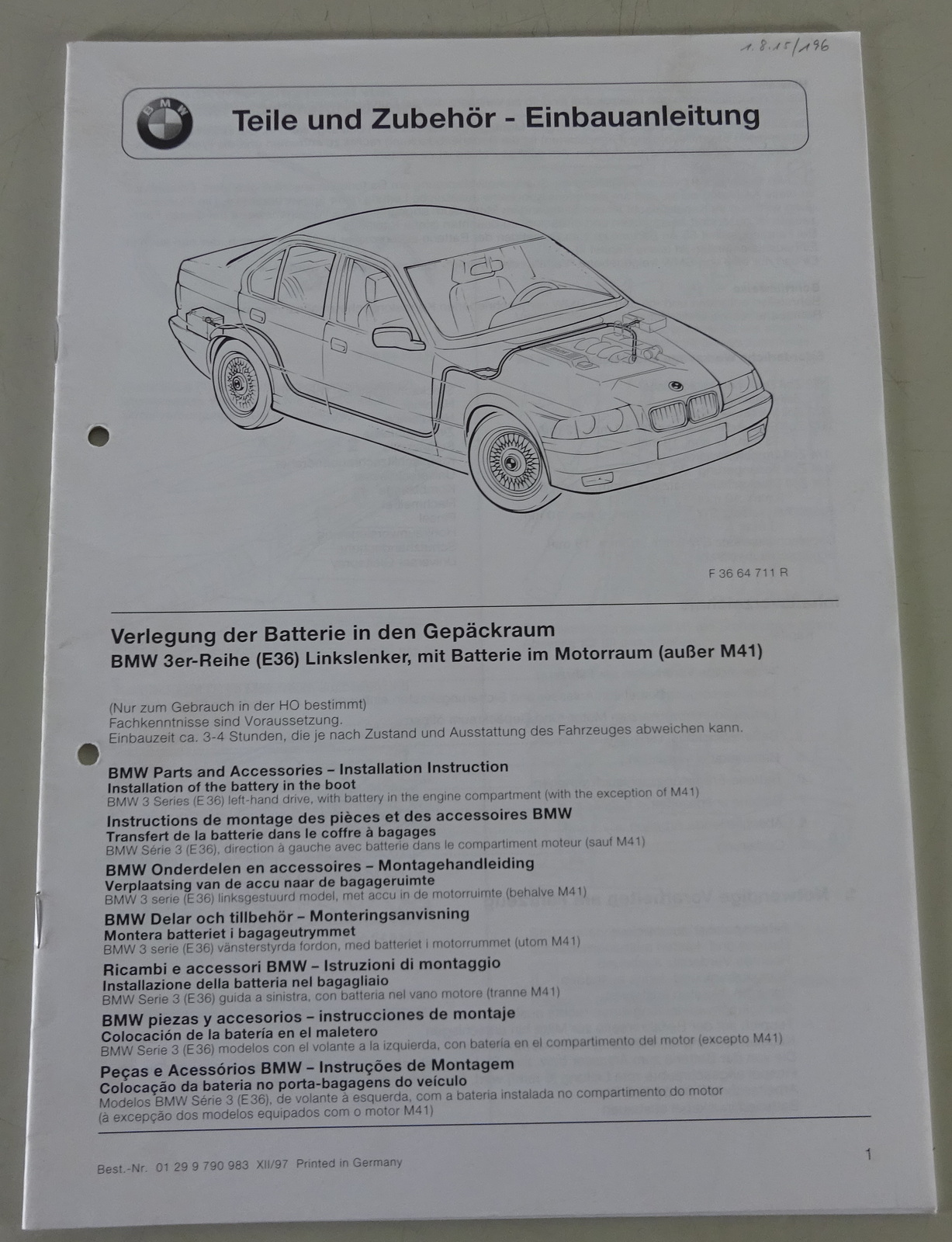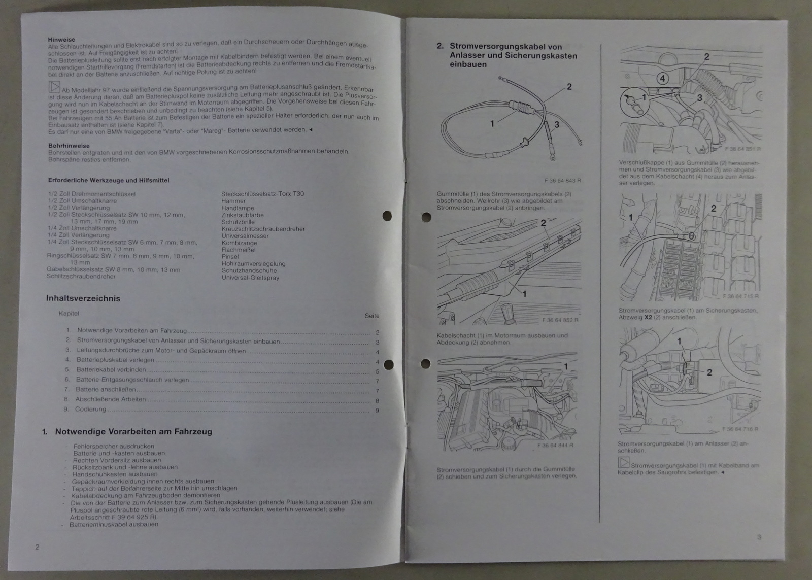 Einbauanleitung BMW 3er E36 Verlegung der Batterie in Gepäckraum Stand 12/1997