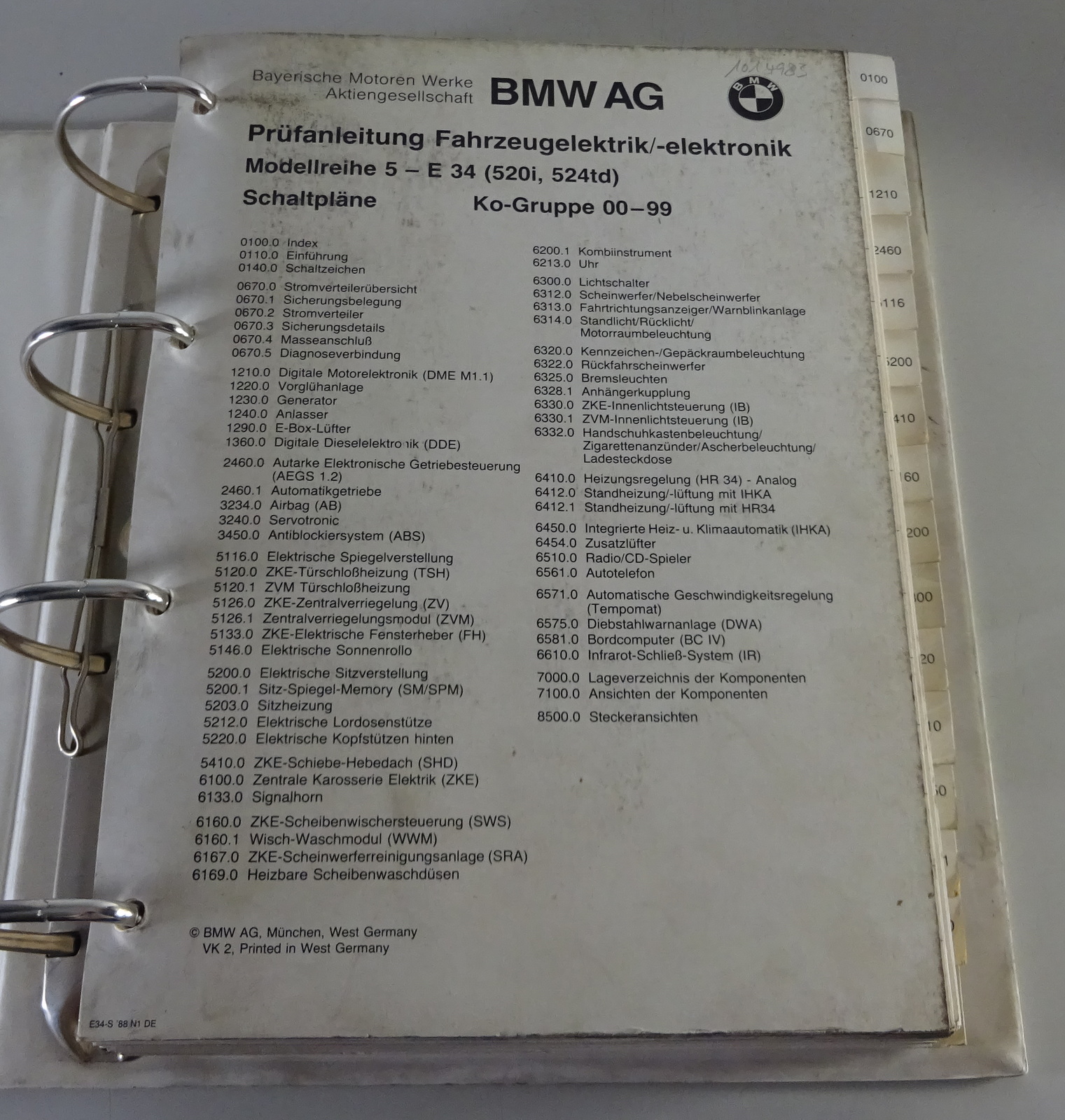 Werkstatthandbuch Elektrik / Schaltpläne BMW 5er E34 520i etc Modelljahr ab 1988