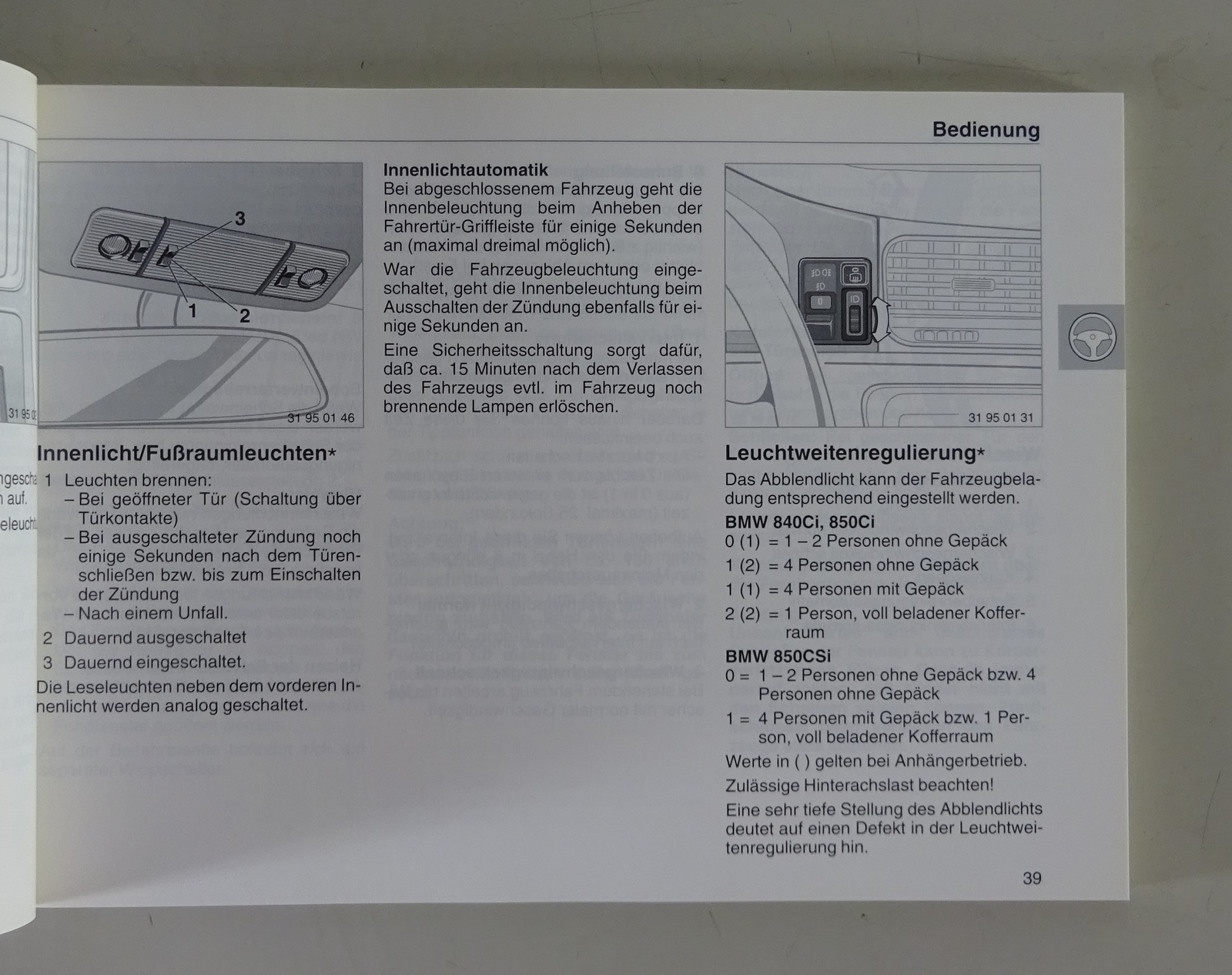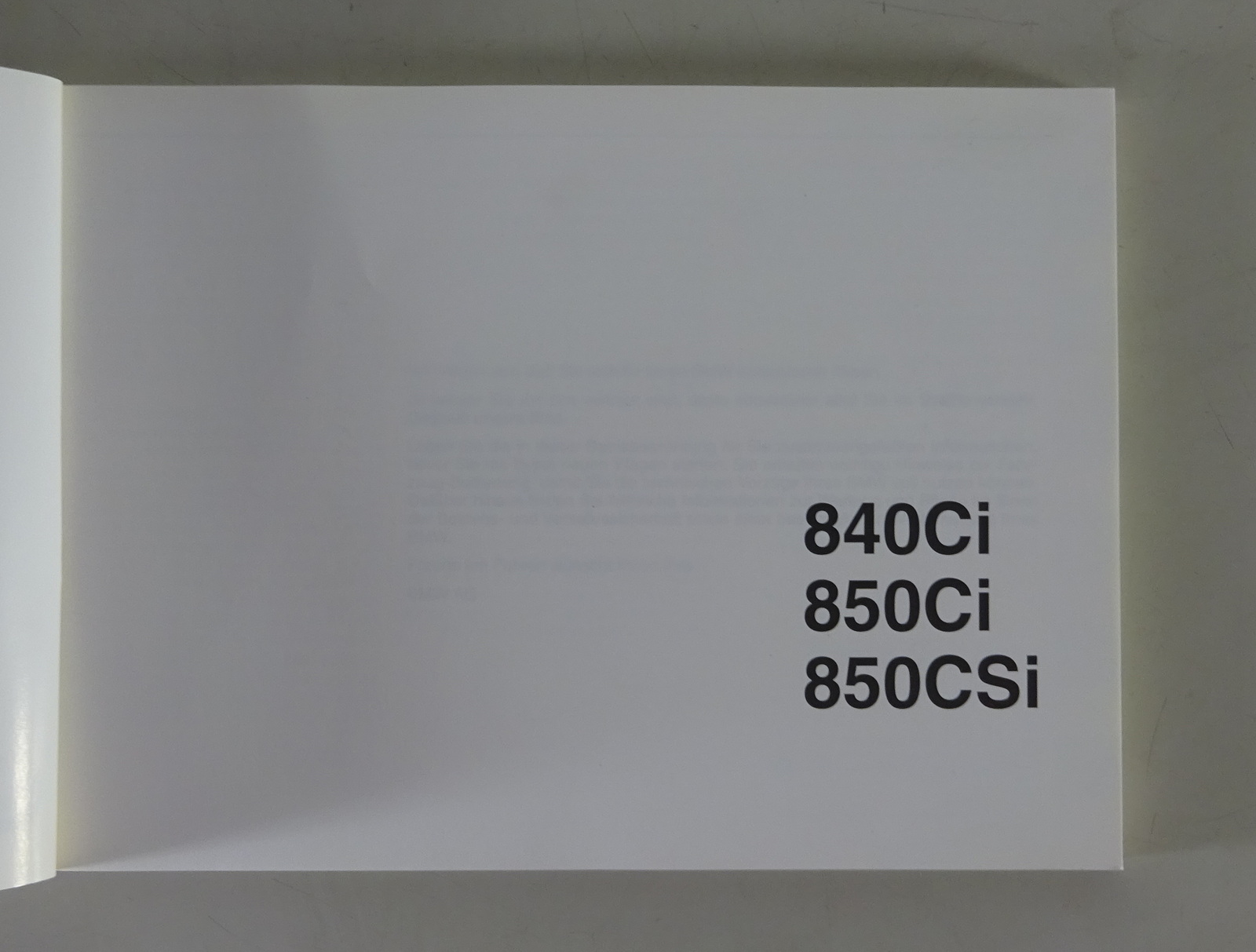 Betriebsanleitung BMW 8er E31 840 Ci / 850 Ci / 850 CSi Stand 09/1994