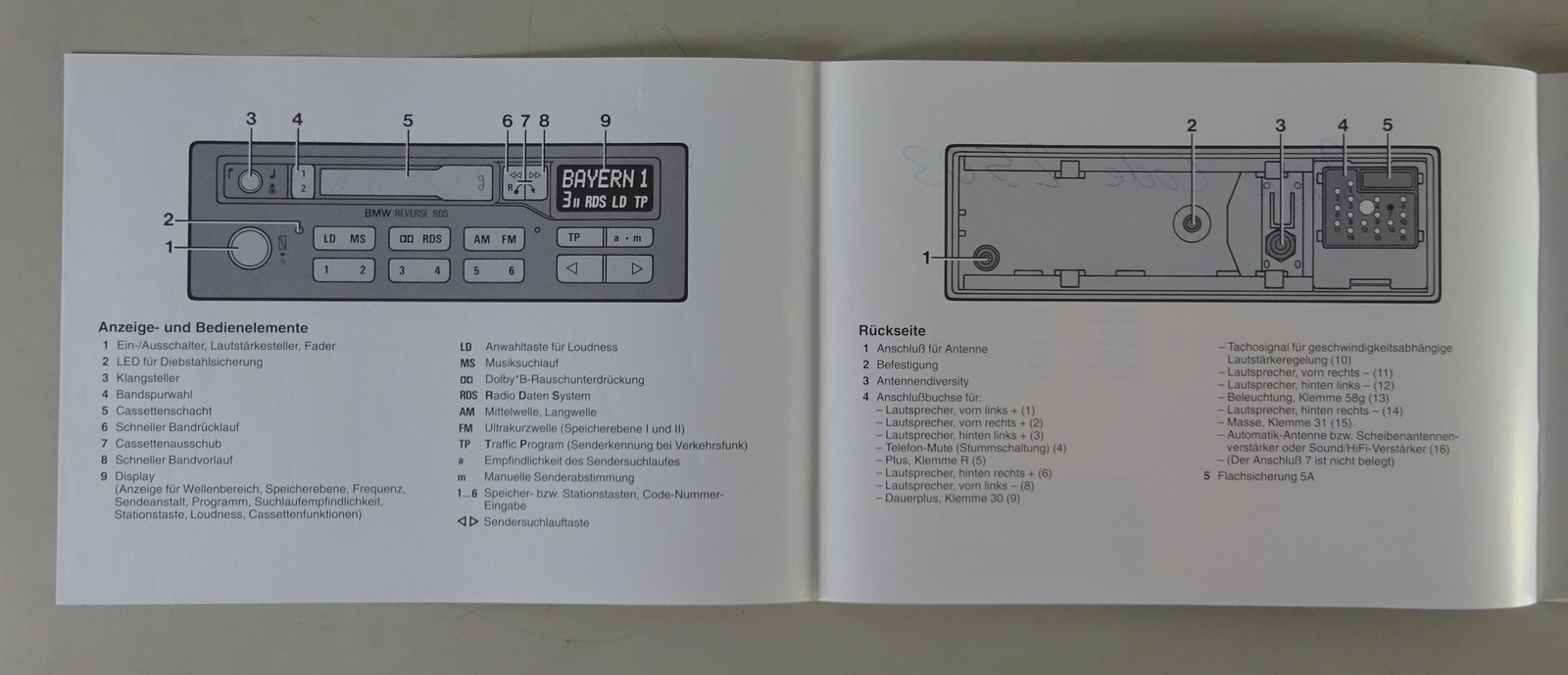 Betriebsanleitung / Handbuch BMW Autoradio Reverse RDS von 07/1993