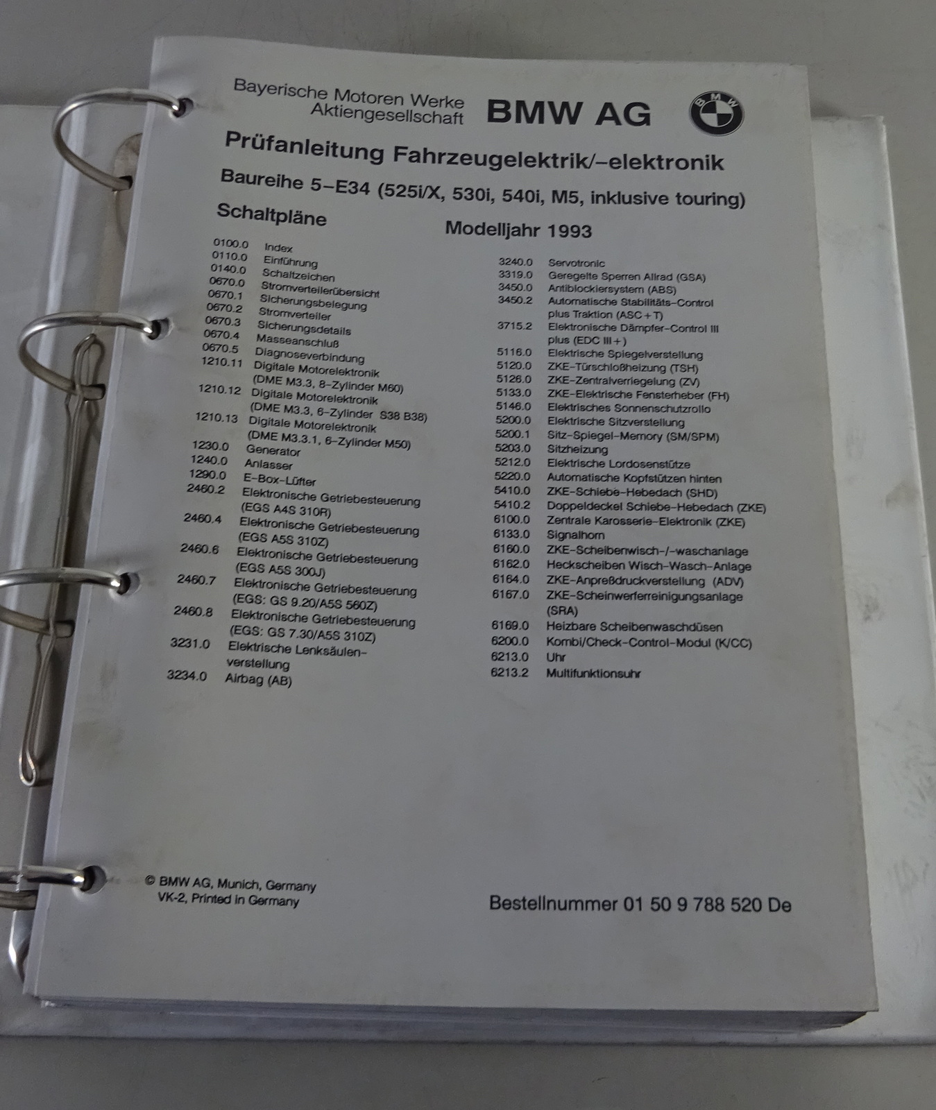 Produktinformationen "Werkstatthandbuch Elektrik / Schaltpläne BMW 5er E34 inkl. M5 Modelljahr 1993"